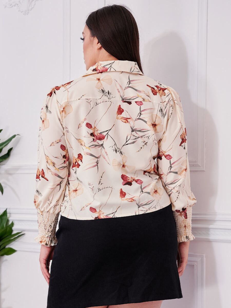 Bluse mit Blumen Muster, Rüschen und Manschette