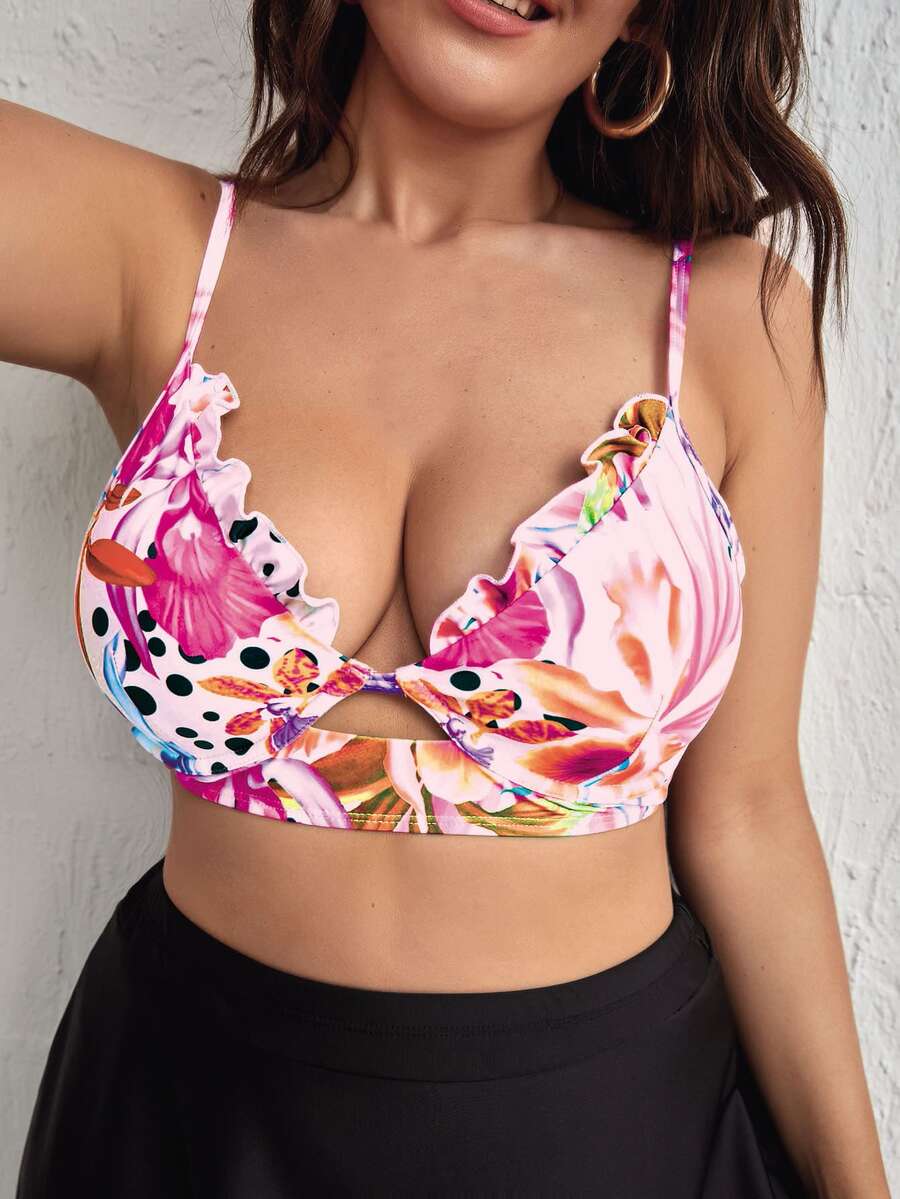 Übergrößen Bikini-Oberteil mit Blumen Muster, für Sommer Strandurlaub