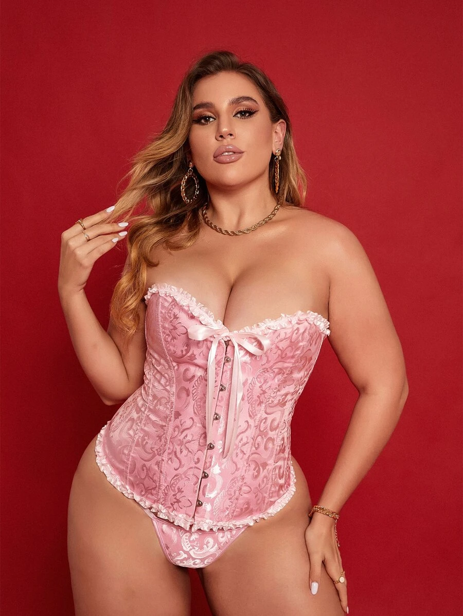 Figurformende Unterwäsche mit Rüschenbesatz, Band, Jacquard Satin & Höschen