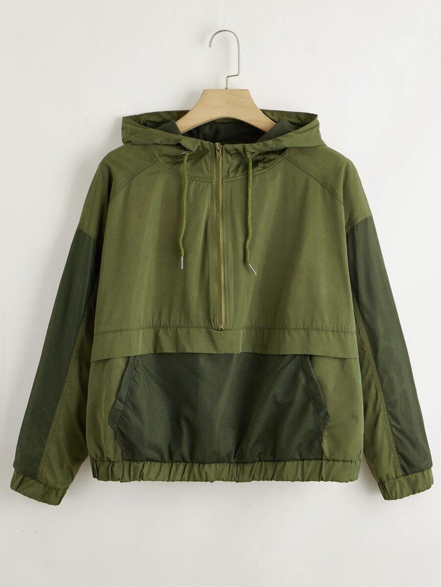 Winddichte Jacke mit halbem Reißverschluss, Känguru Tasche und Kapuze