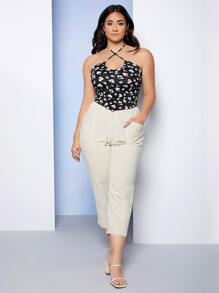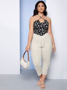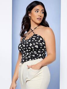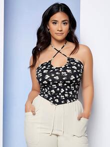 Halter Top mit Zipfelsaum, Criss-Cross, Band hinten und Blumen Muster