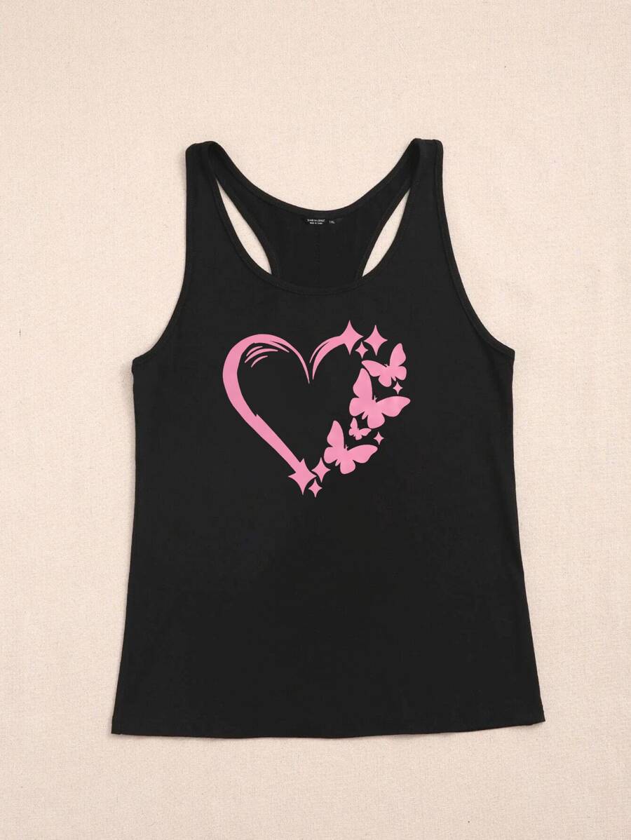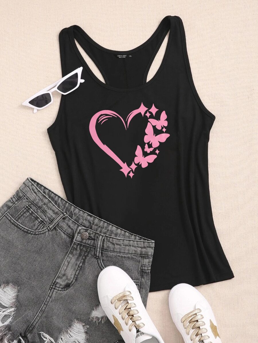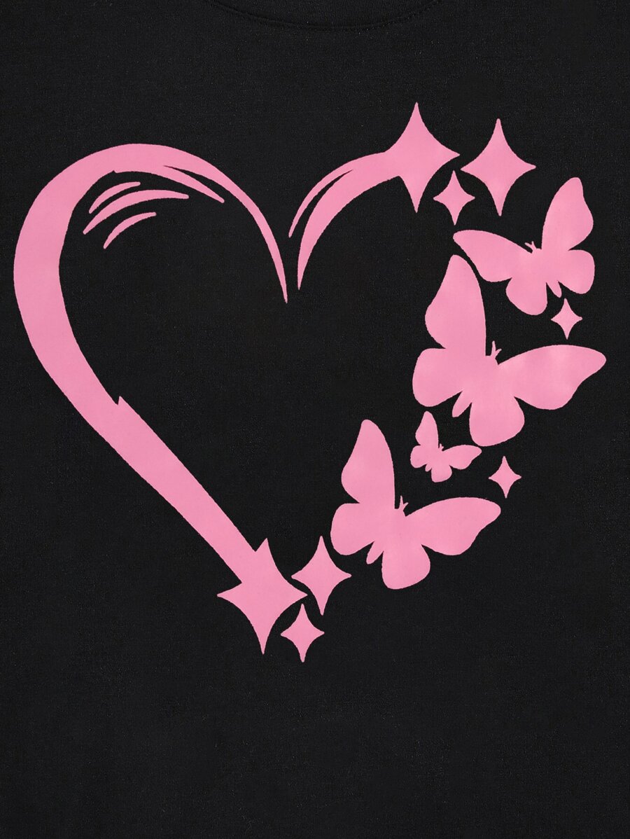 Grafik T-Shirts Damen Tops mit Herz- und Schmetterlings-Muster Große Größen