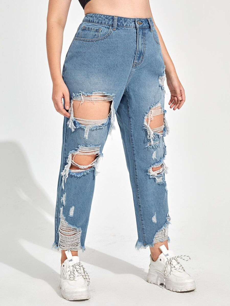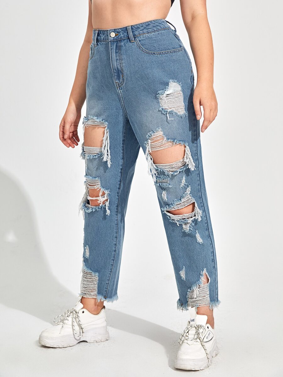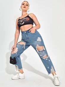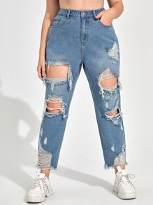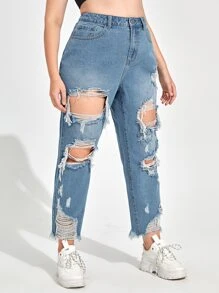 Mom Jeans mit hoher Taille und Riss