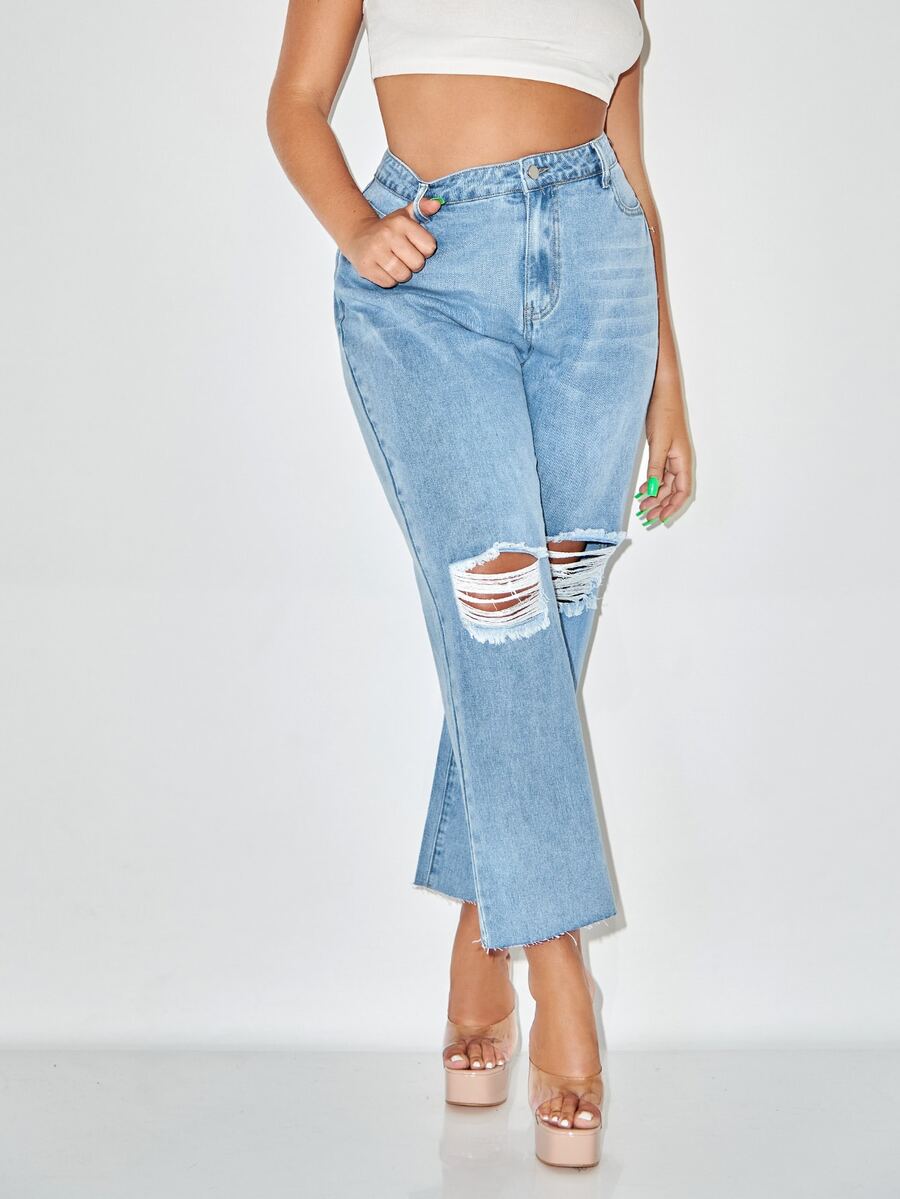 Jeans mit hoher Taille, Riss, breitem Beinschnitt