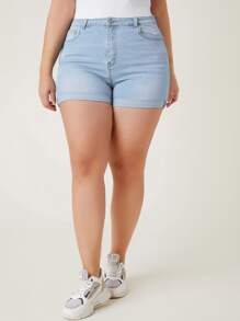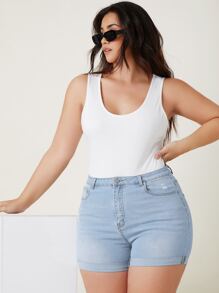 Denim Shorts mit hoher Taille, gerolltem Saum