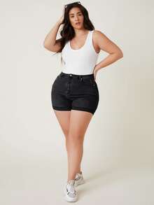 Denim Shorts mit hoher Taille, gerolltem Saum