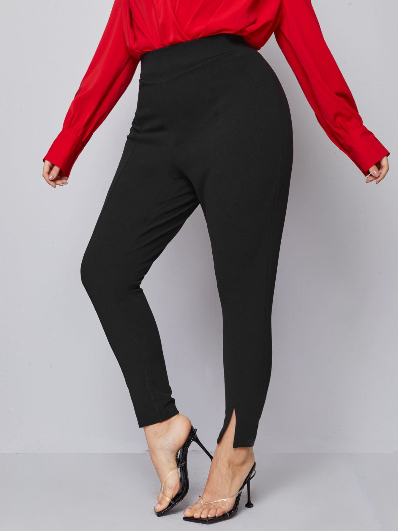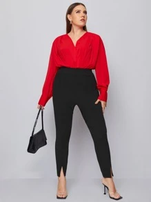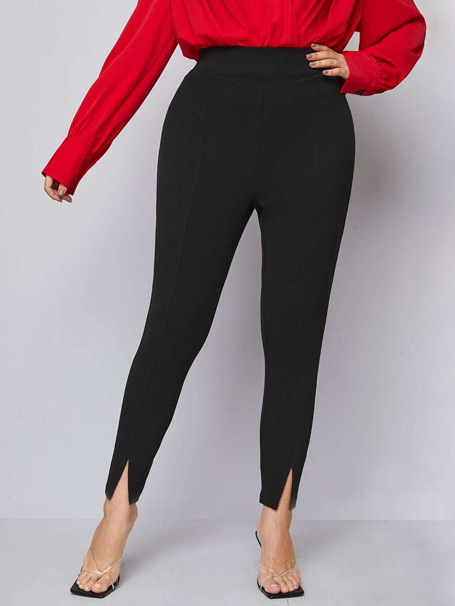 Schmale Hose mit hoher Taille und Schlitzbesatz