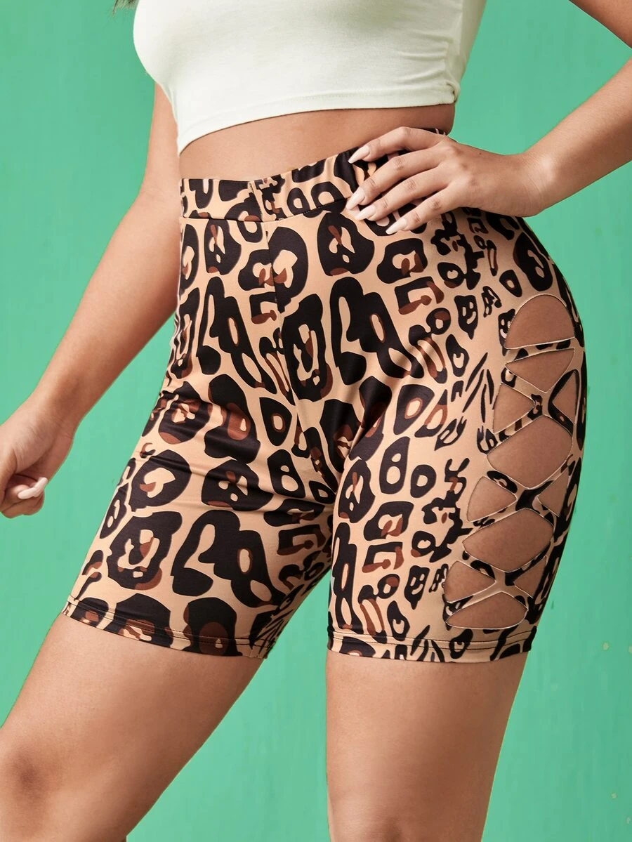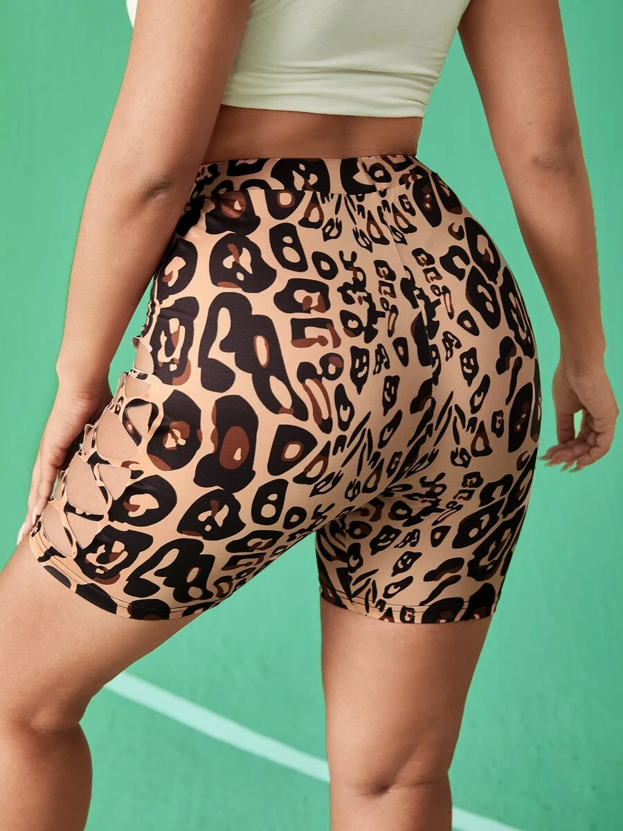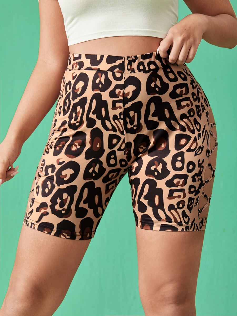 Radlerhose mit Leopard Muster und Ausschnitt Seite