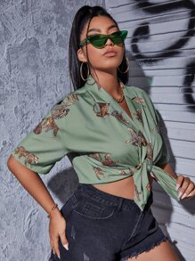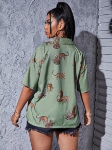 Knöpfen vorn Tiere Überalles Muster Lässig Blusen Große Größen