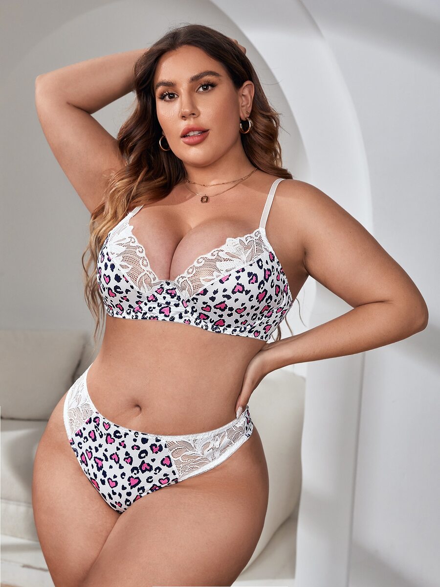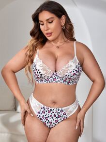 Dessous Set mit Leopard Muster, Kontrast Spitzen, Bügel