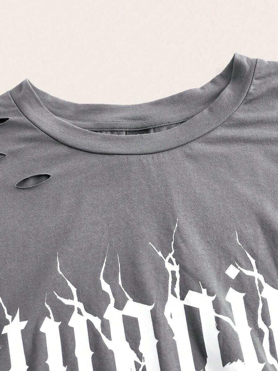 Drop Shoulder T-Shirt mit Buchstaben Grafik, Ausschnitt