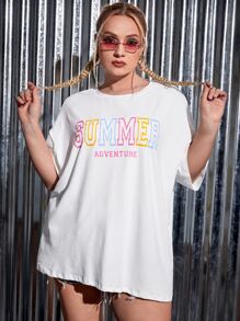 Drop Shoulder T-Shirt mit Buchstaben Grafik