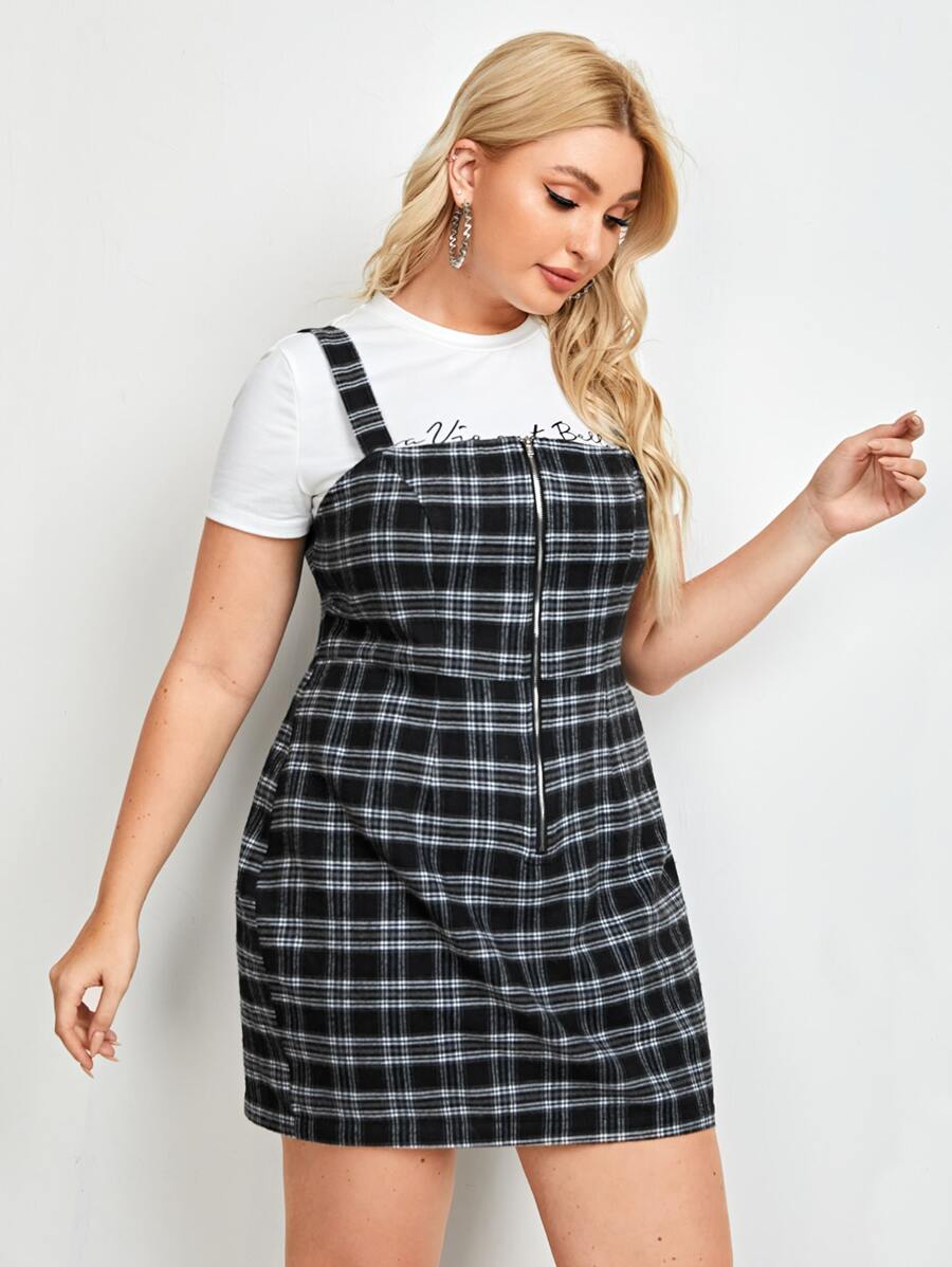 Kleid mit O-Ring, Reißverschluss und Karo Muster