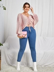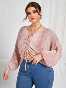 Pullover mit Farbverlauf, Schnürung vorne, Fledermausärmeln