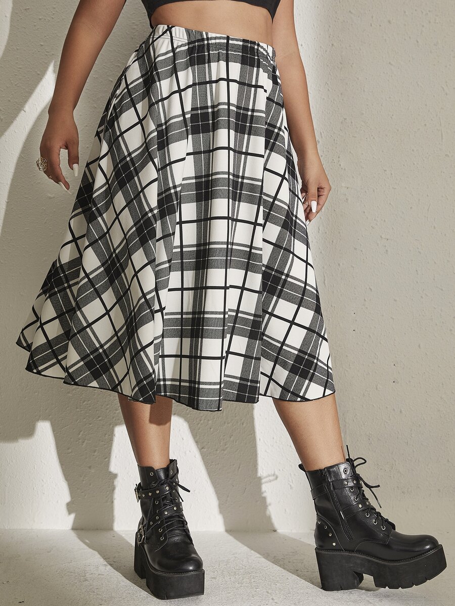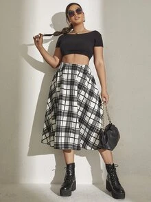 Ausgestellter Rock mit Plaid Muster