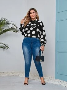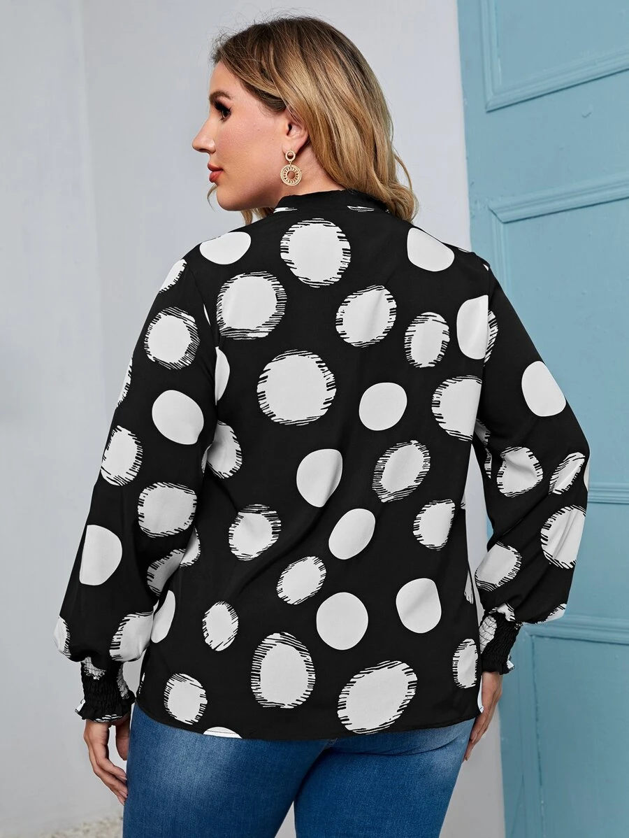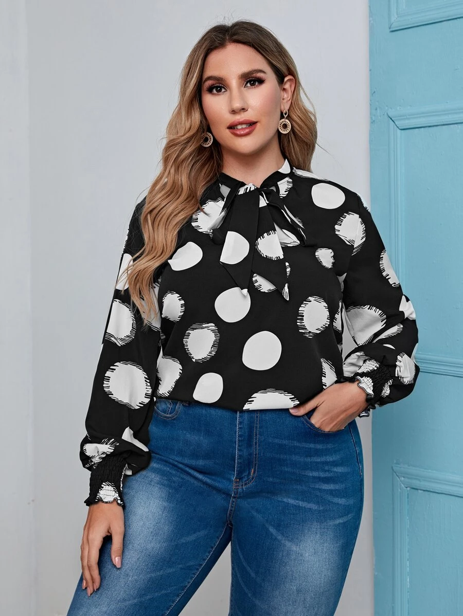 Bluse mit Punkten Muster und Schleife am Ausschnitt