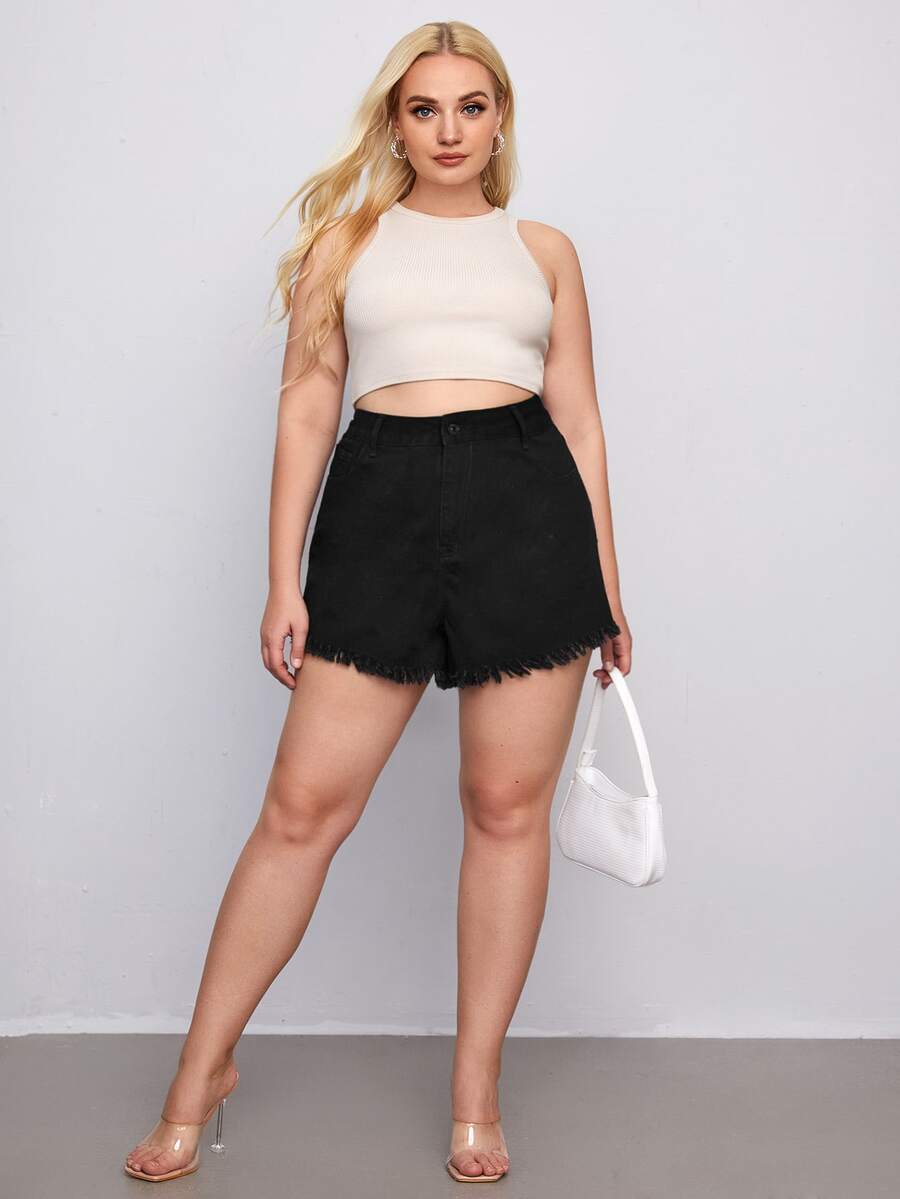 Denim Shorts mit ungesäumtem Saum