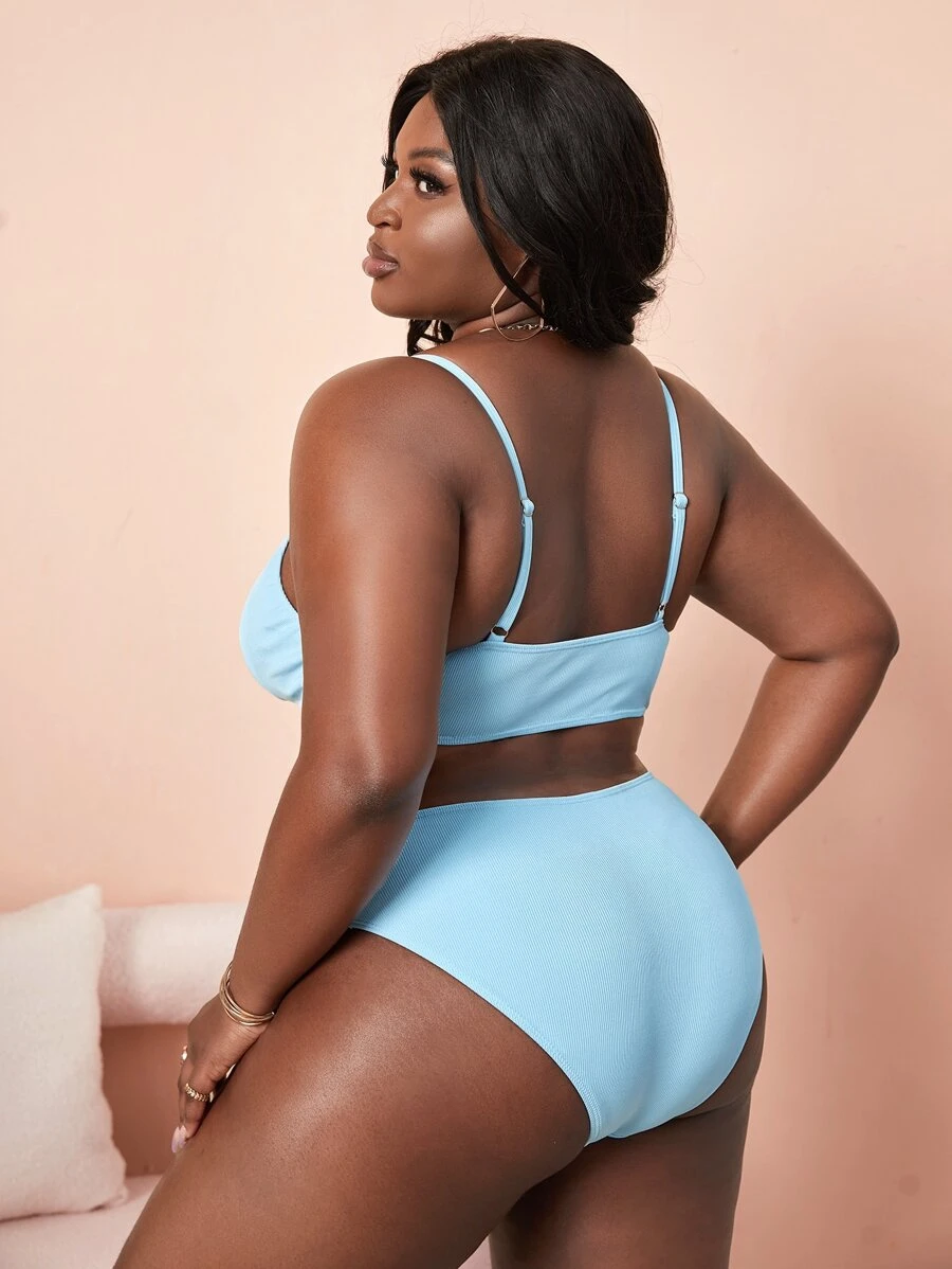 Hoch tailliertes Bikini Set in Große Größen mit geripptem Ring-Verbindung für Sommer Strand