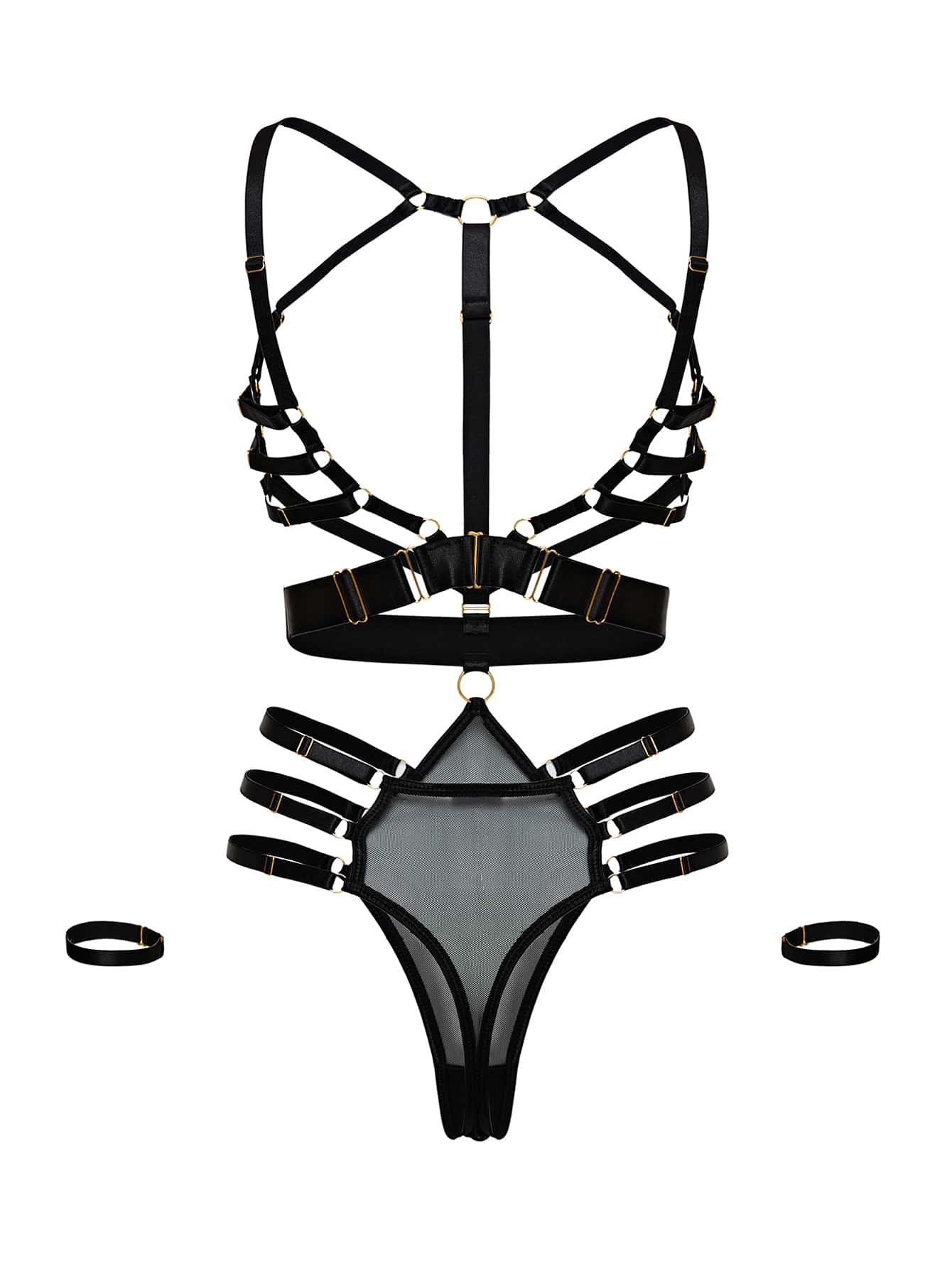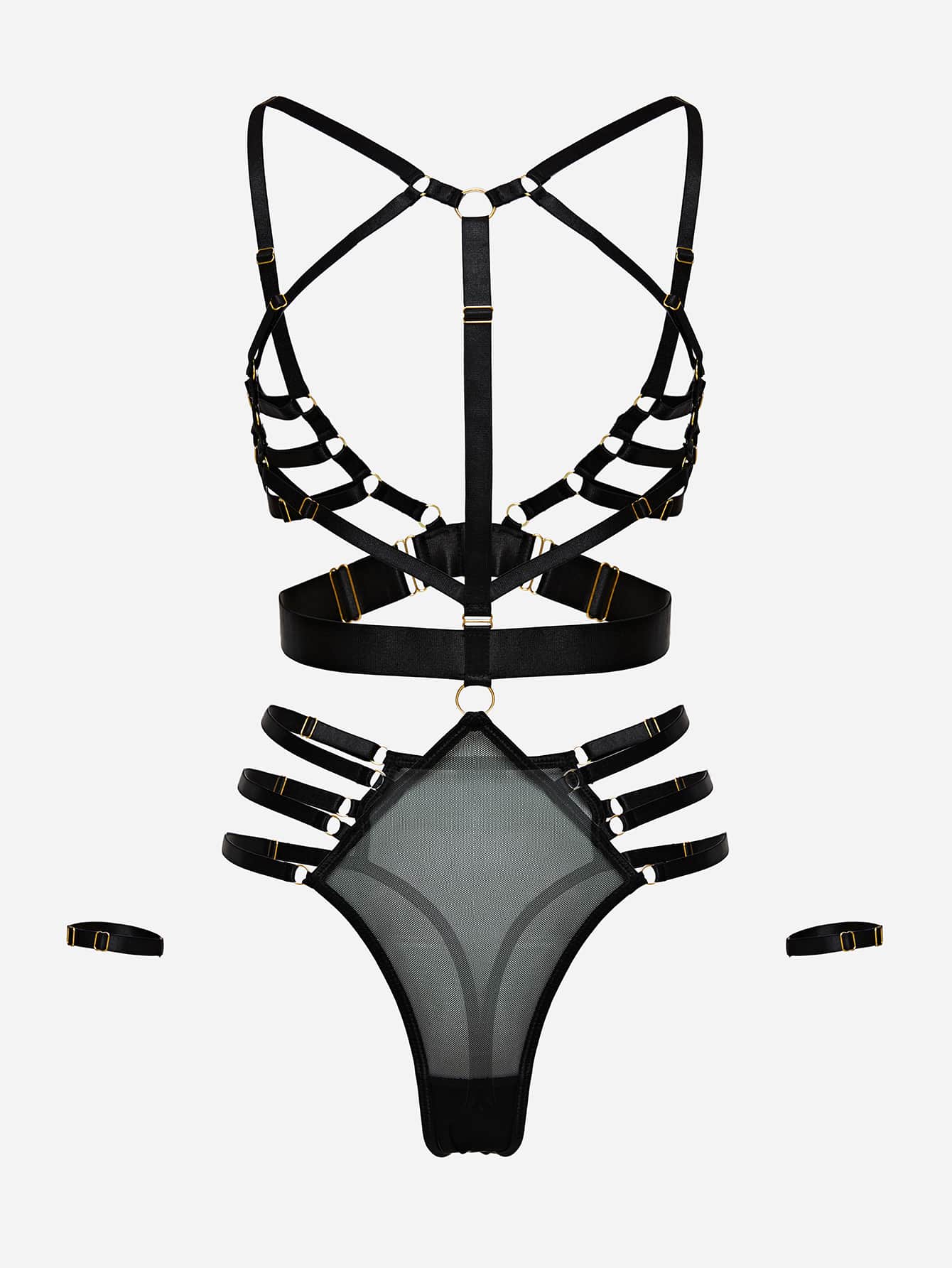 Teddy Body mit Ring Bindung, Mesh & Beinring