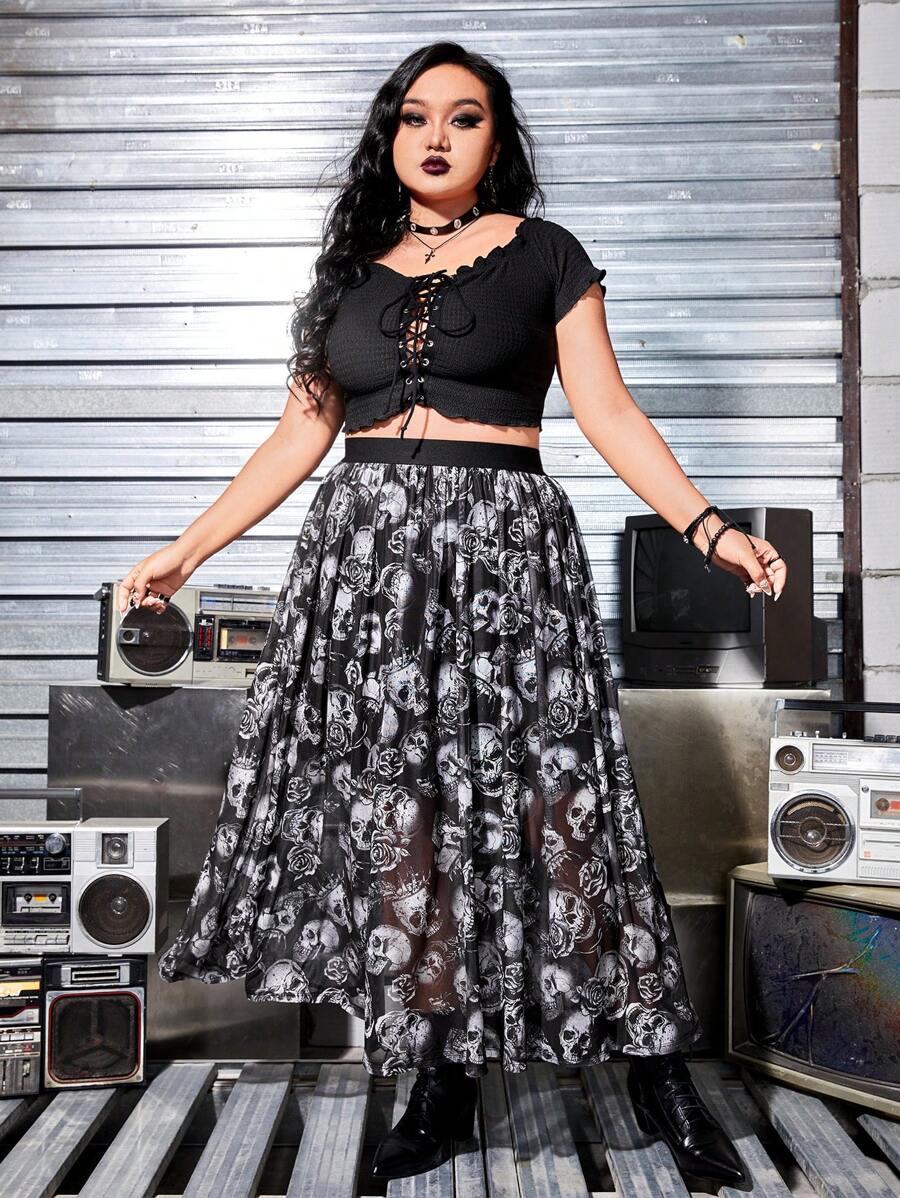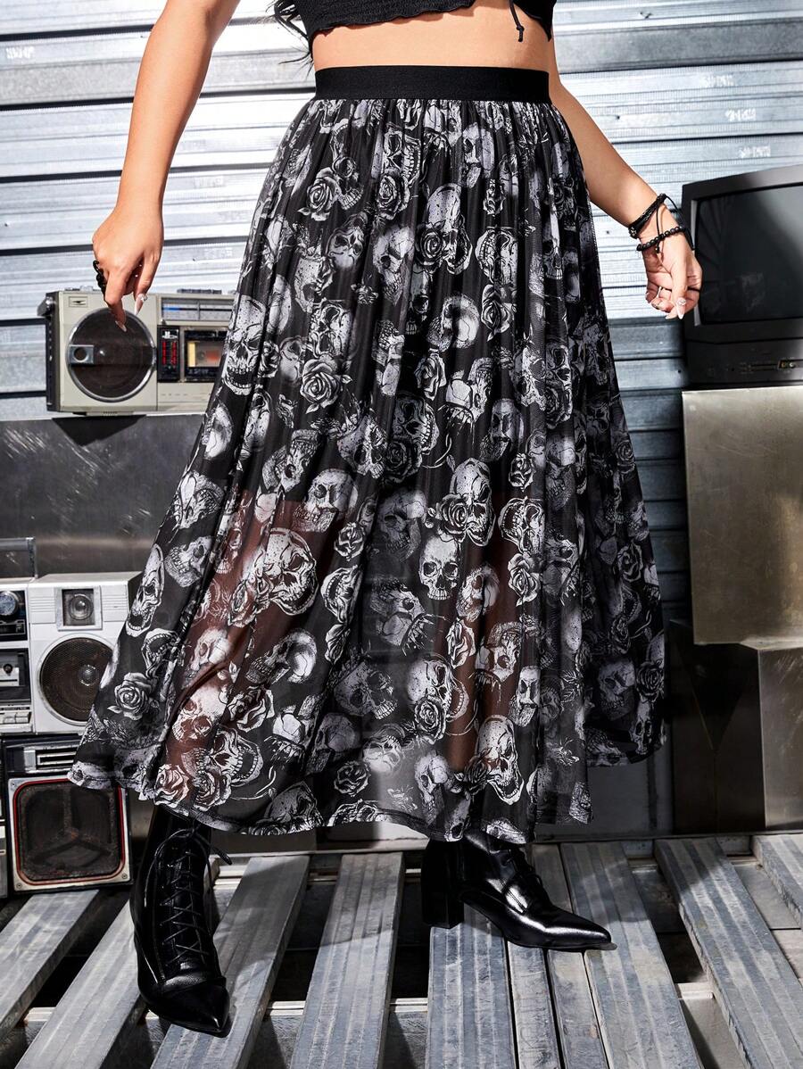Modischer Halloween Bedruckter Plisseerock In Übergröße