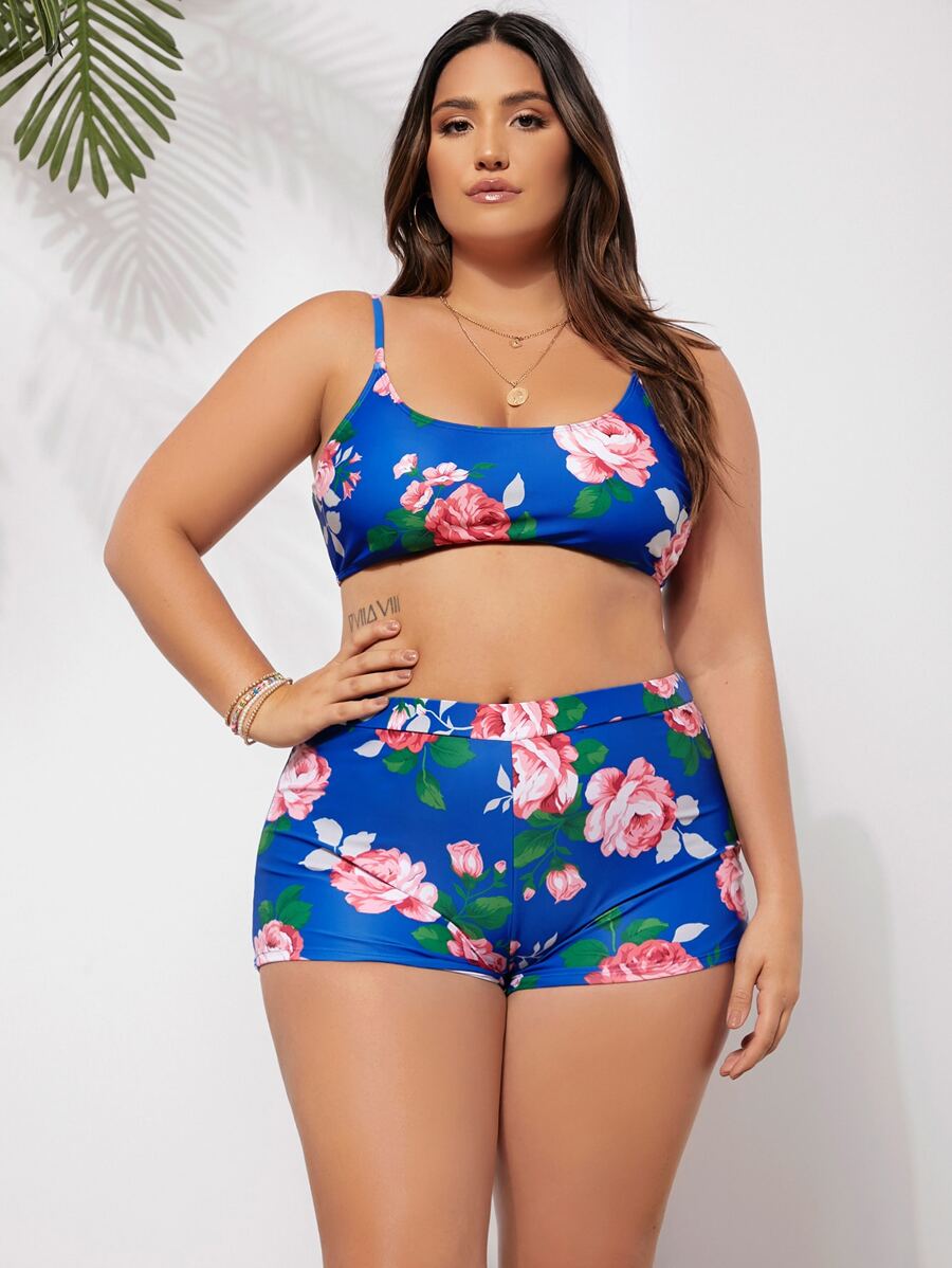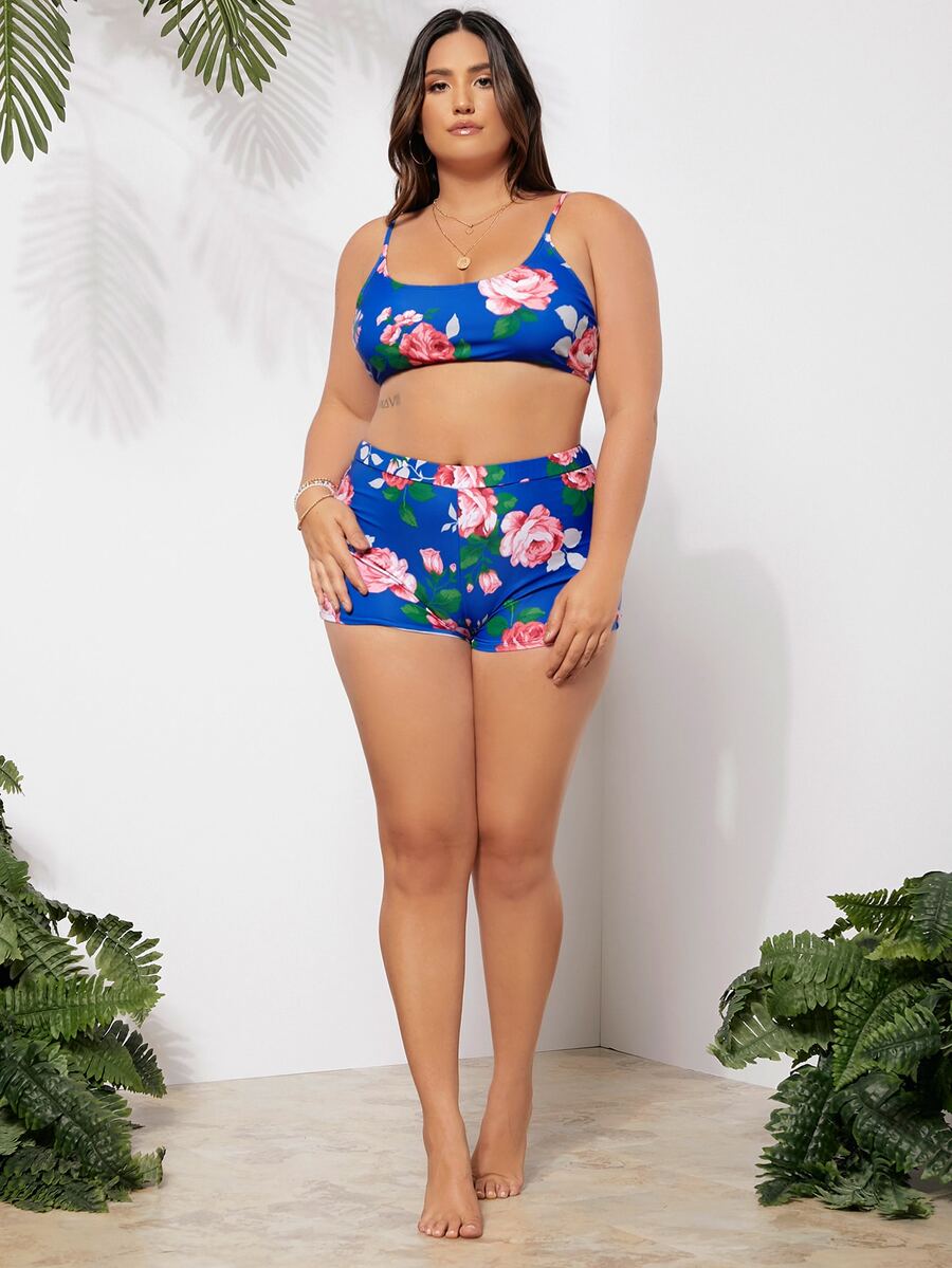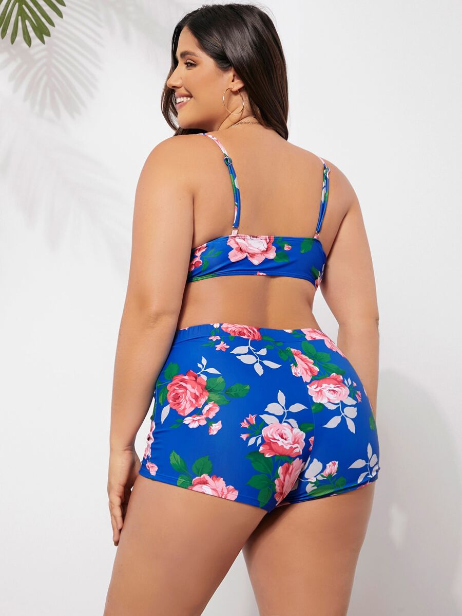 Große Größen Bikini Set mit Blume Muster Shorts für den Strand im Sommer