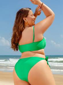 Große Größen schlichtes Bikini-Set mit Knoten für den Sommer am Strand