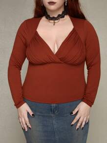 Langärmliges T-shirt Mit Falten Auf Der Brust In Übergröße