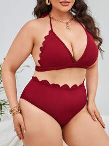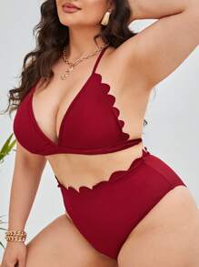 Große Größen Rippen halfter dreieck bikini set mit wellenkante, für Sommerstrand