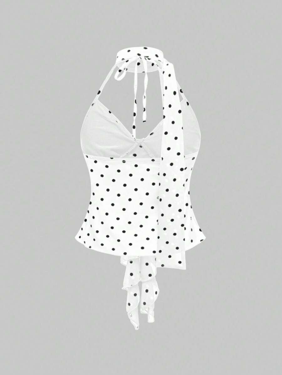 Sexy Y2K Damen Camisole in Große Größen mit Polka Dot Chiffon Allover-Muster und Rüschenkragen, ärmelos