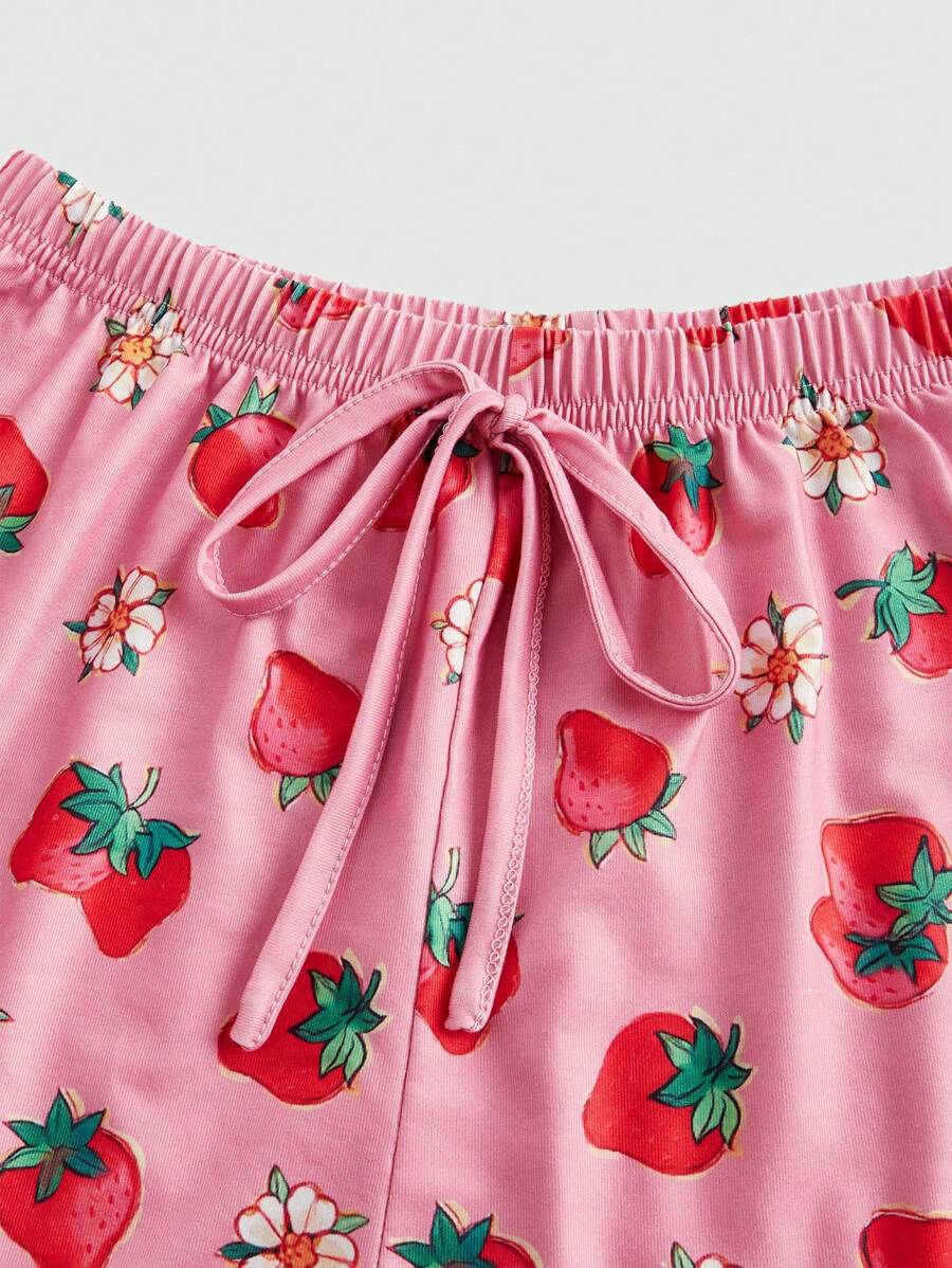Modische Pyjama-Set in großen Größen mit Trägerspitze und Erdbeermuster Shorts für den Sommer