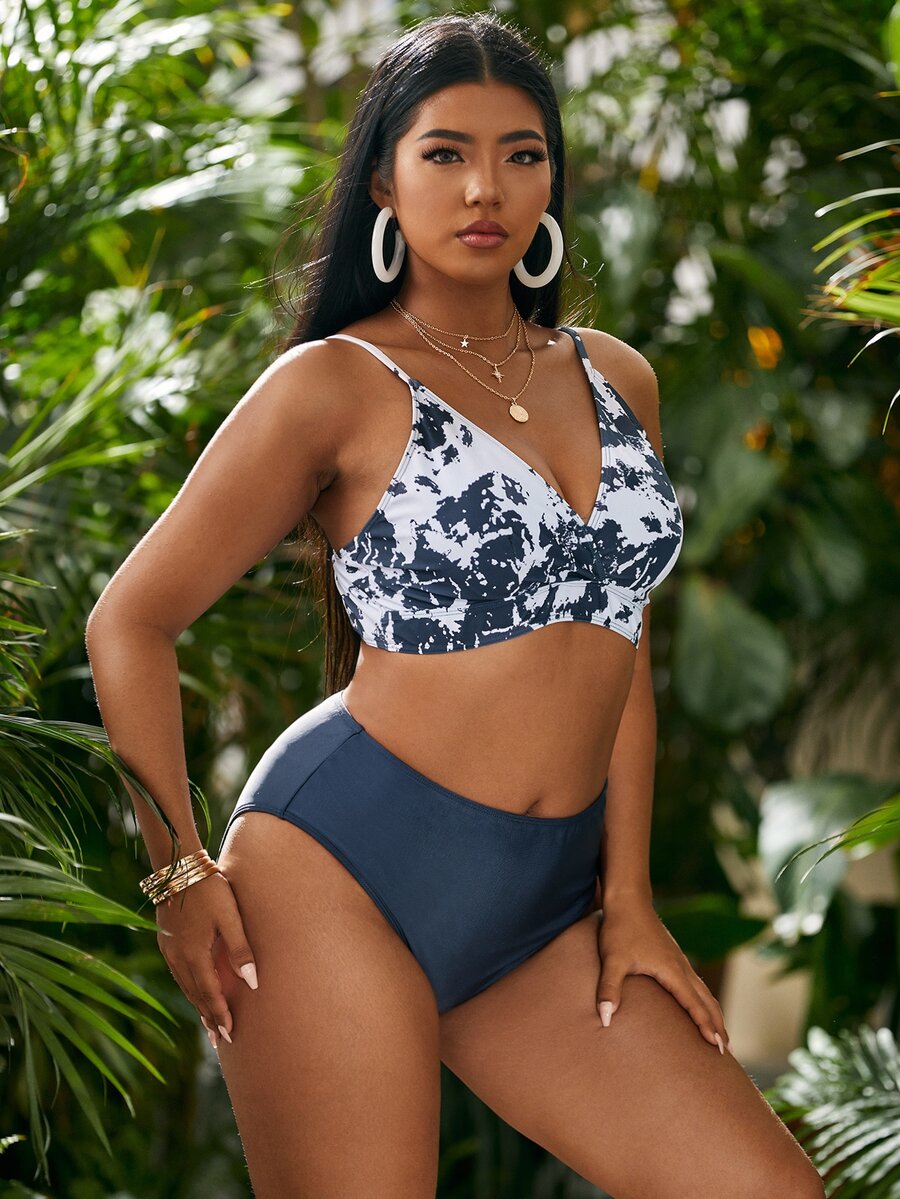Große Größen Batik High-Waist Bikini Set für den Sommer am Strand