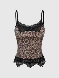 ROMWE Avant Damen Retro Sexy Y2K Baddie Camouflage Pailletten Patchwork Kreuz Dekor Allround Vielseitiges Trägertop, Große Größen Camisole und Trägertop