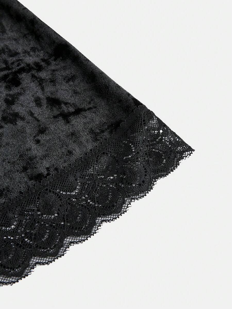 Goth Vintage glamouröser Diamant-Samt Kontrast Spitzenbesatz Meerjungfrau Saum Rock in Große Größen