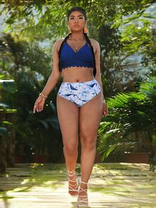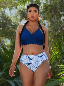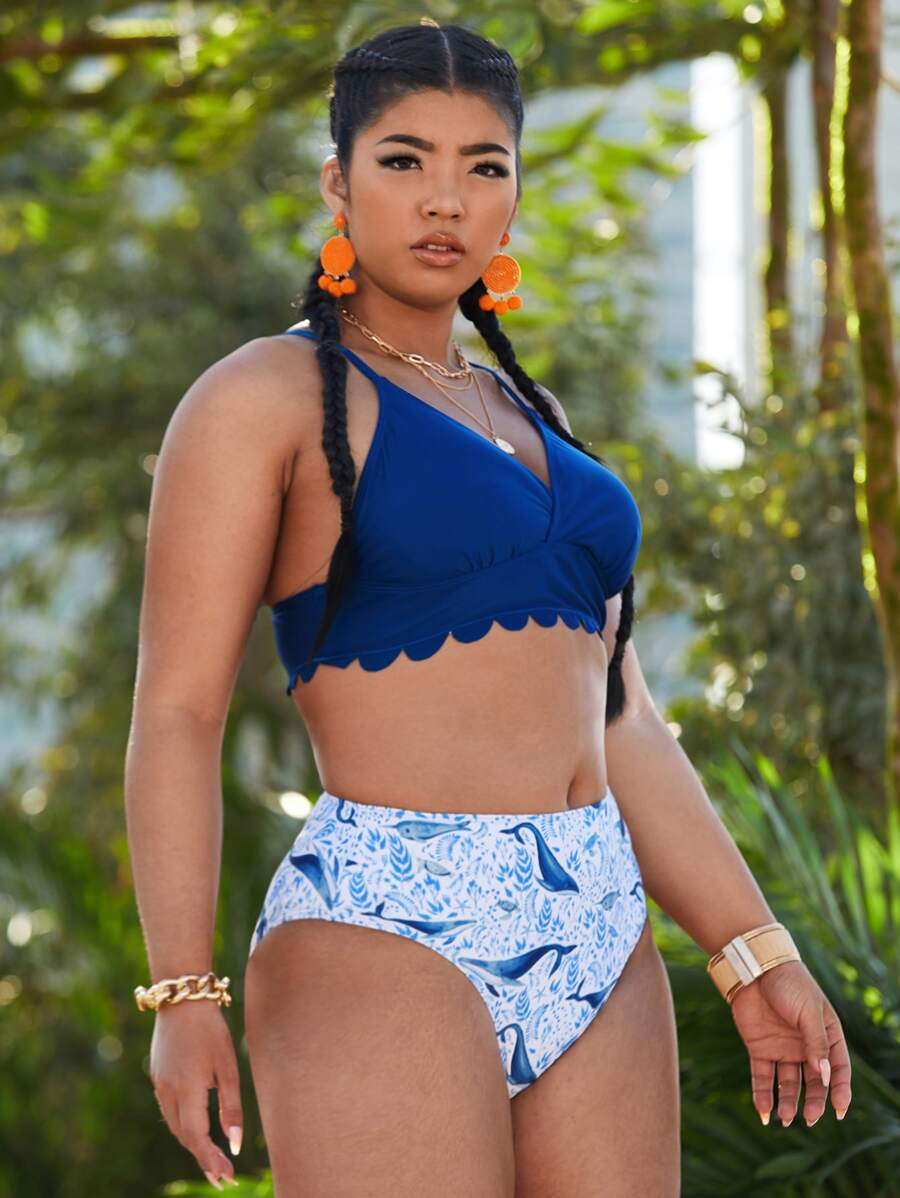 Große Größen Bikini Set mit Wal Grafik und Scallop Saum für Sommer und Strand