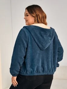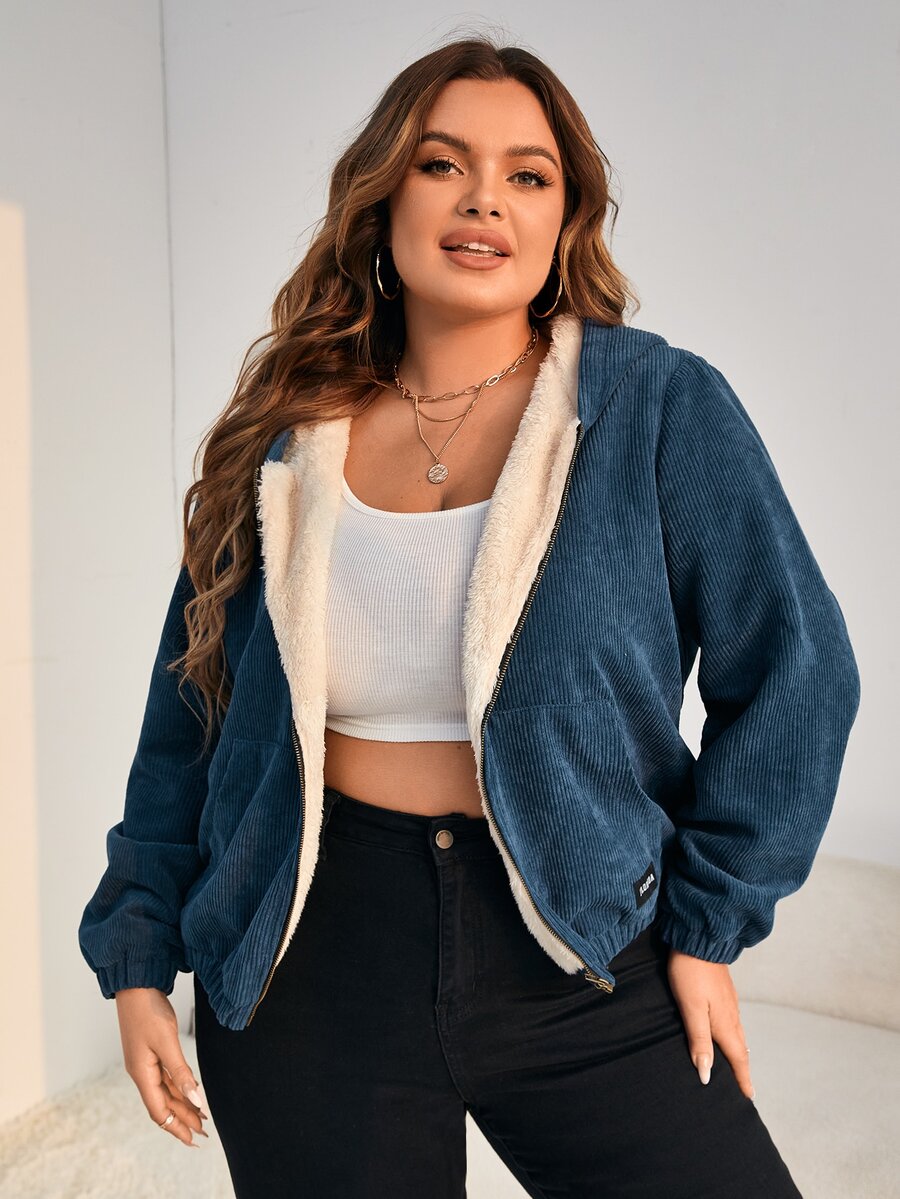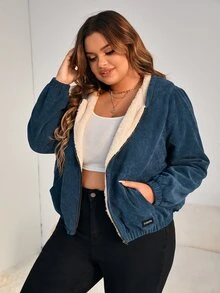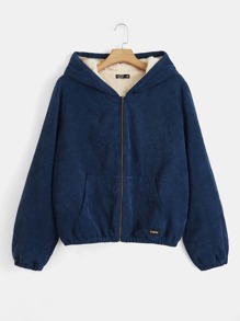Jacke mit schrägen Taschen, Kapuze, Teddy Futter, Kord
