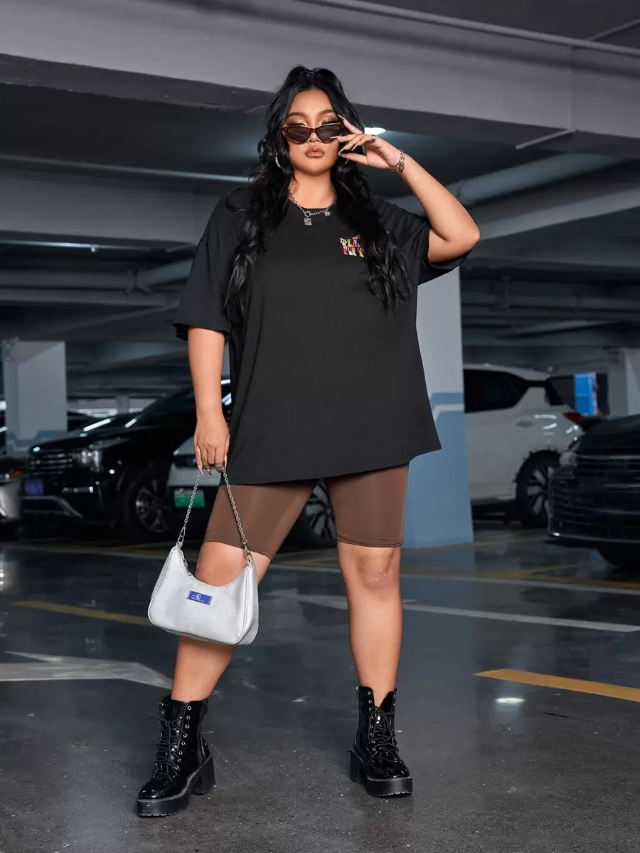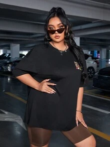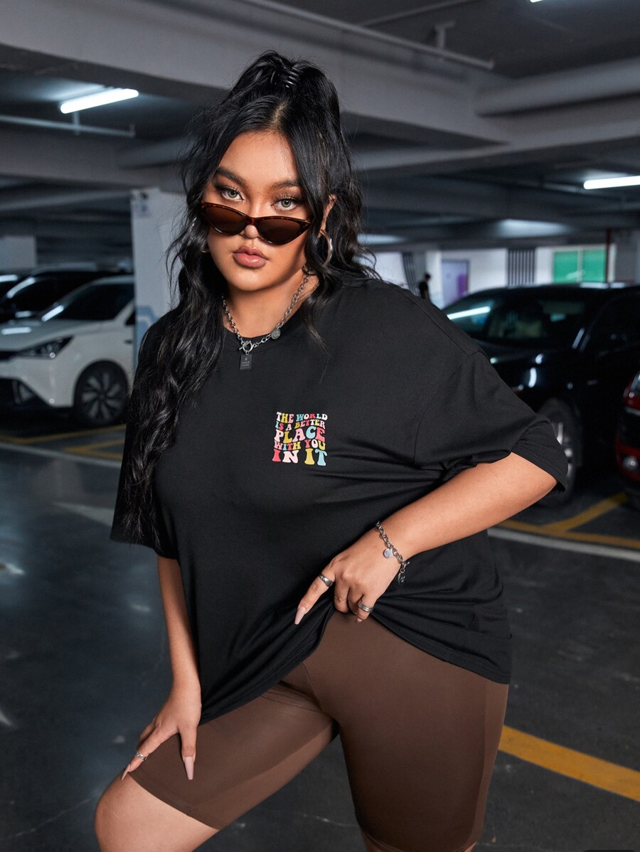 Große Größen T-Shirt mit Slogan Grafik