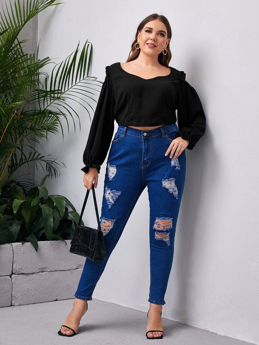 Crop Bluse mit Ausschnitt