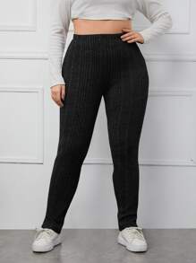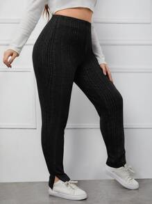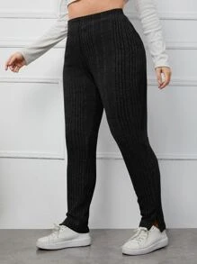Leggings mit Schlitz am Saum, Rippenstrick