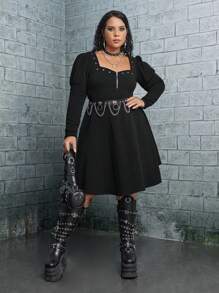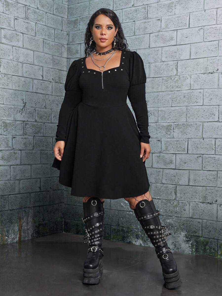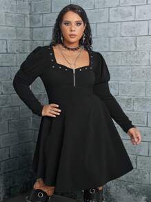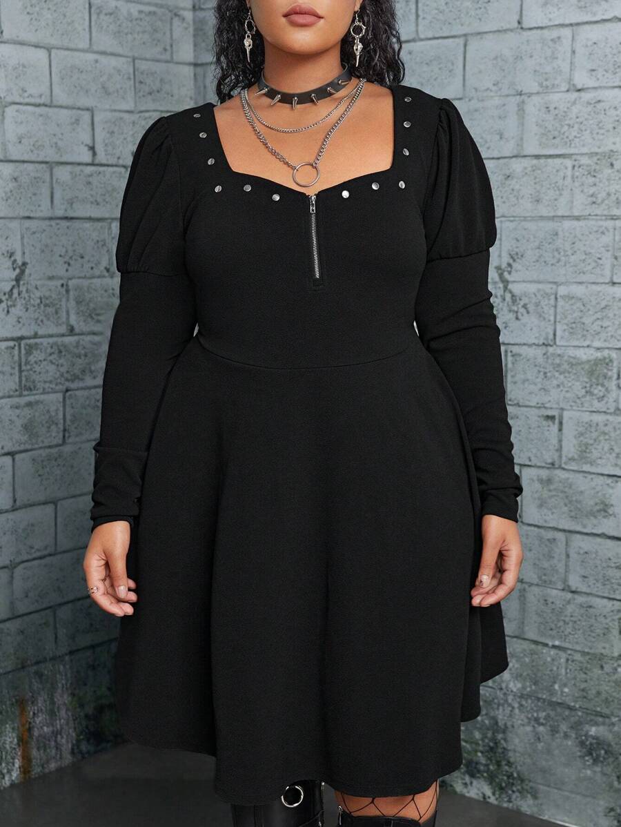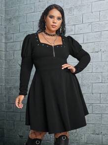 Große Größe Kleid mit Sweetheart Ausschnitt, Keulenärmeln, halbem Reißverschluss, ohne Gürtel
