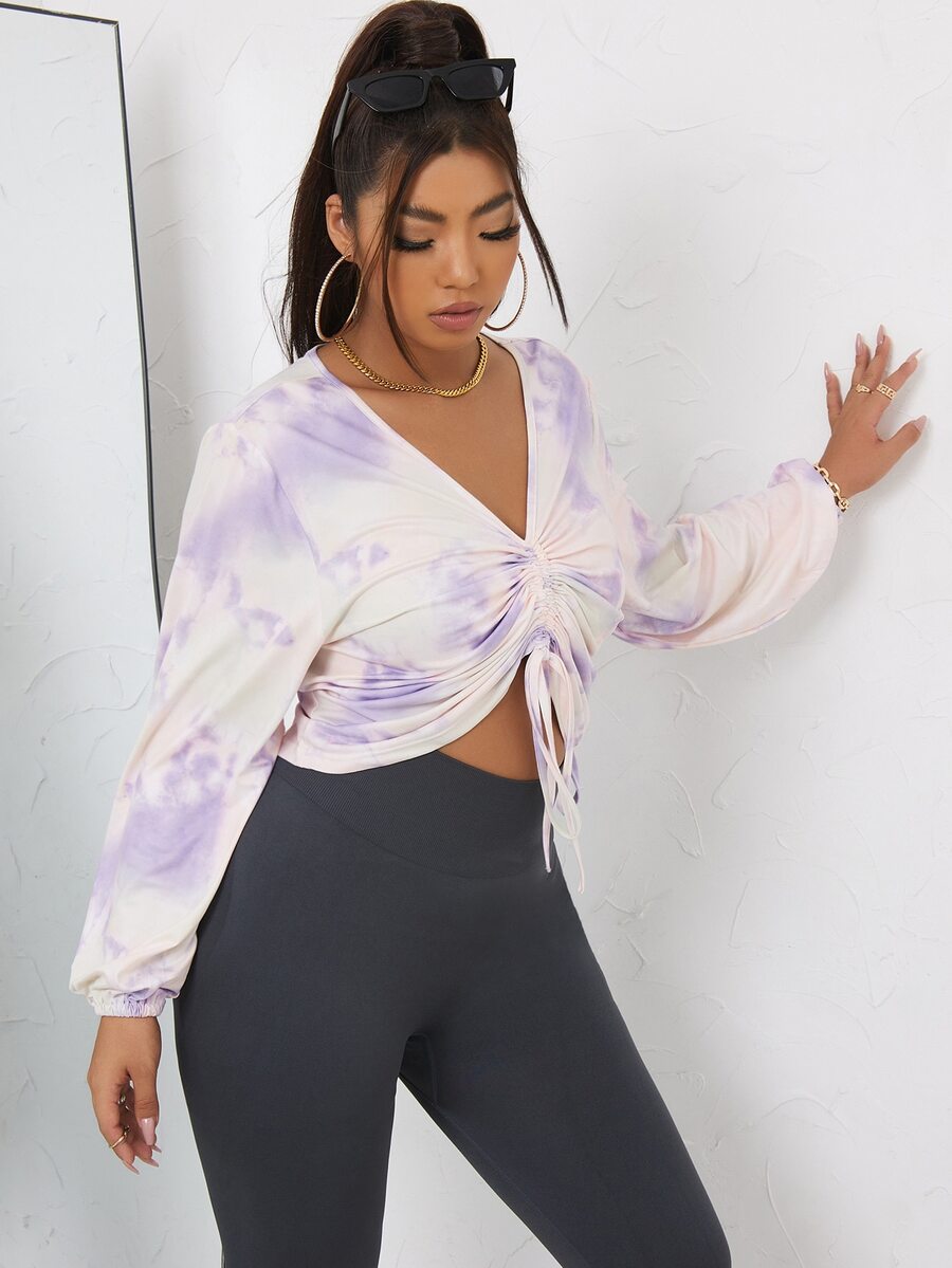 T-Shirt mit Drop Shoulder, Batik, Schnürzug