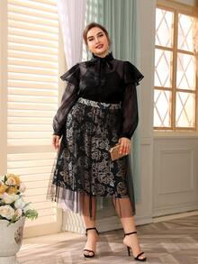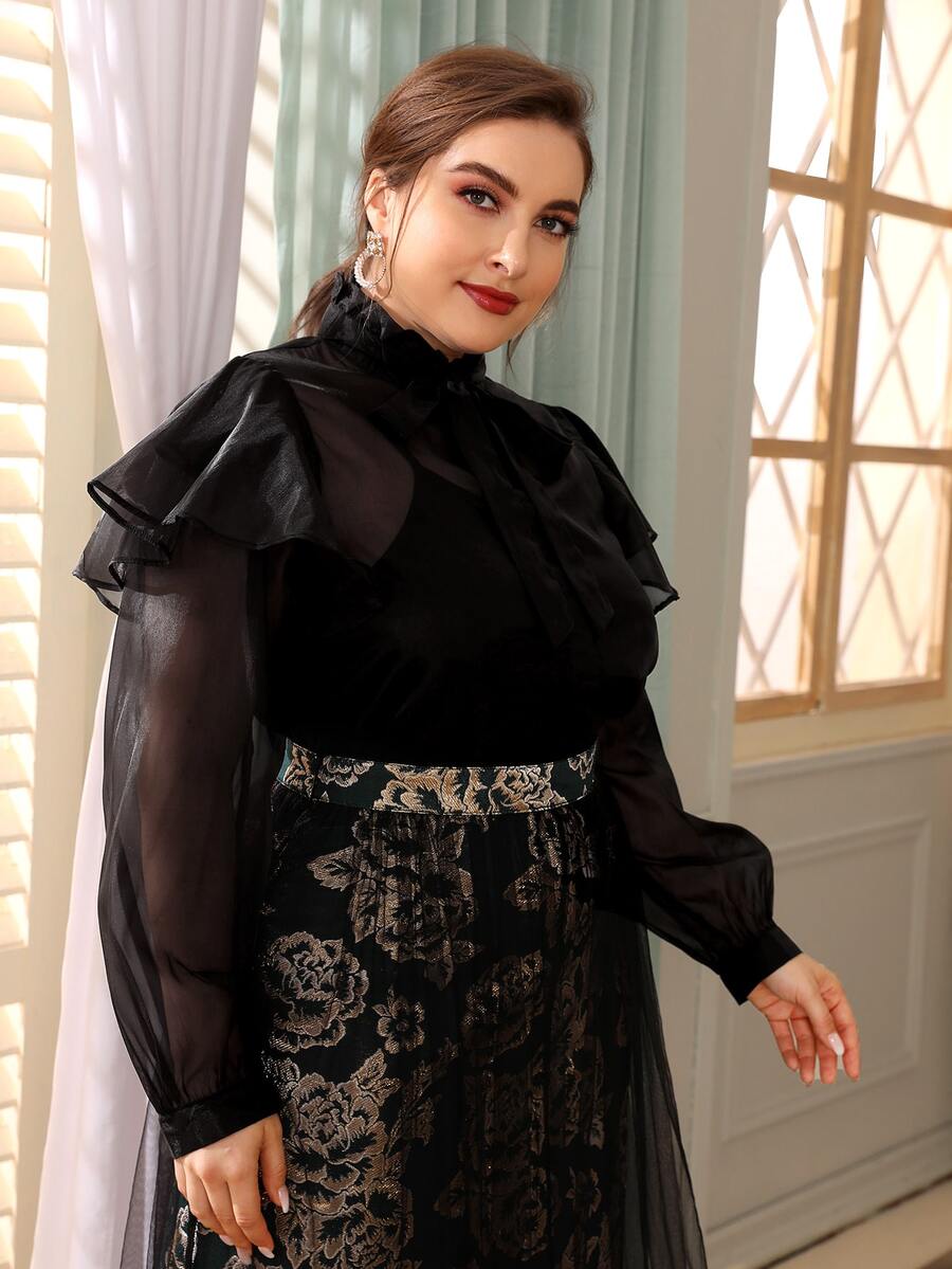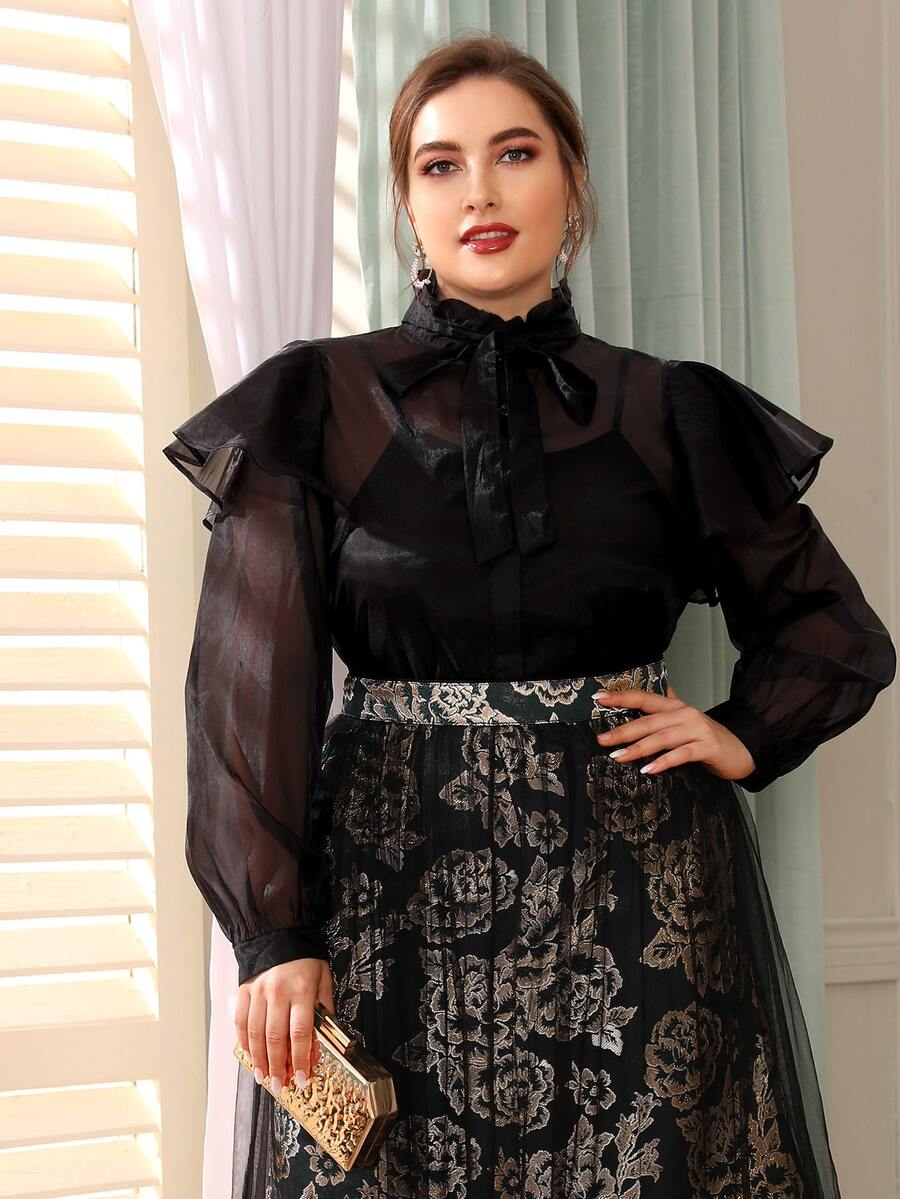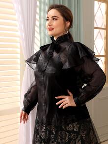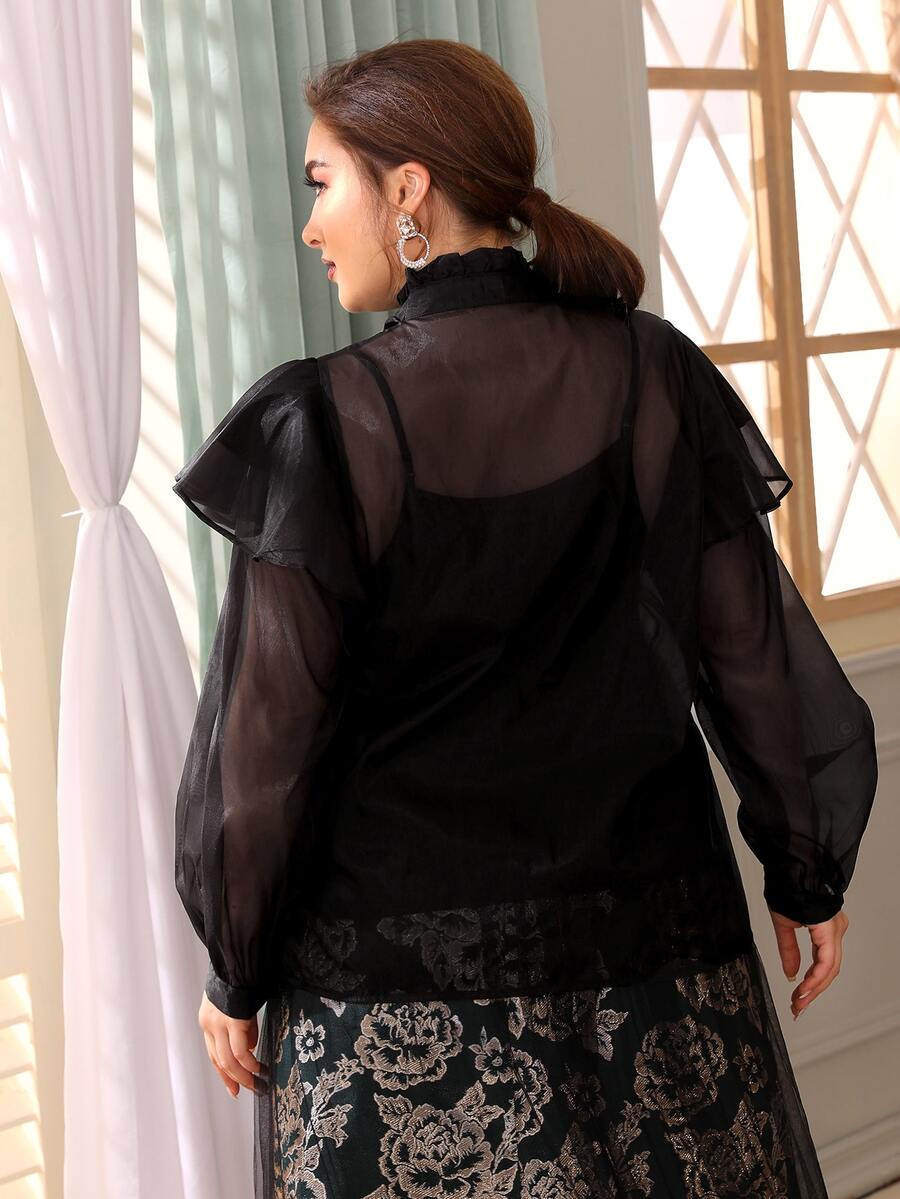 Organza Bluse mit Halsband und Rüsche ohne Cami Top