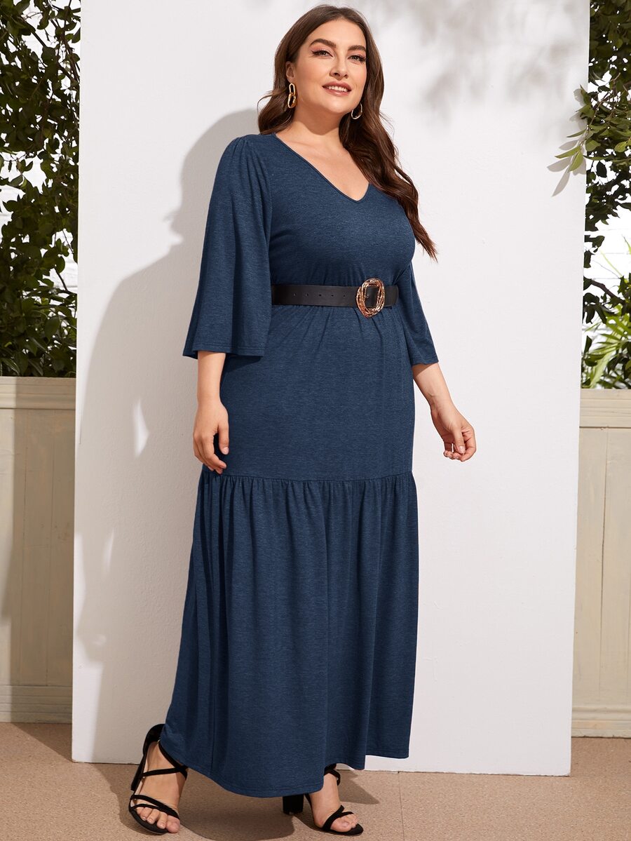 Kleid mit V-Kragen und Schößchen ohne Gürtel