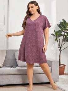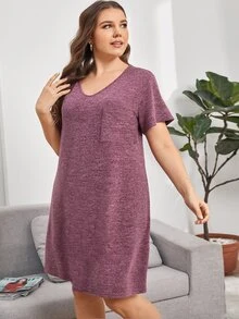 Lounge Kleid mit V-Kragen und Taschen Flicken