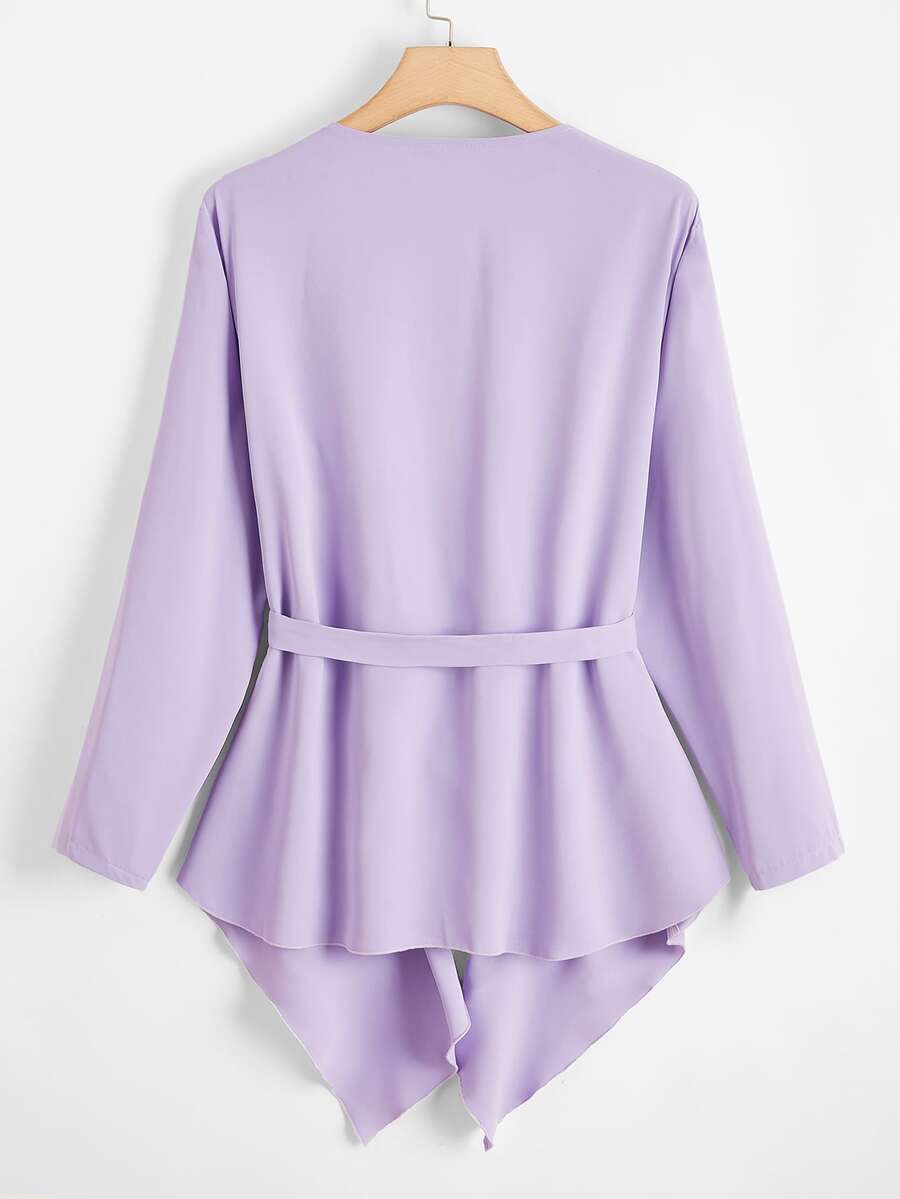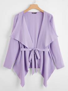Mantel mit Wasserfallkragen, asymmetrischem Saum und Gürtel