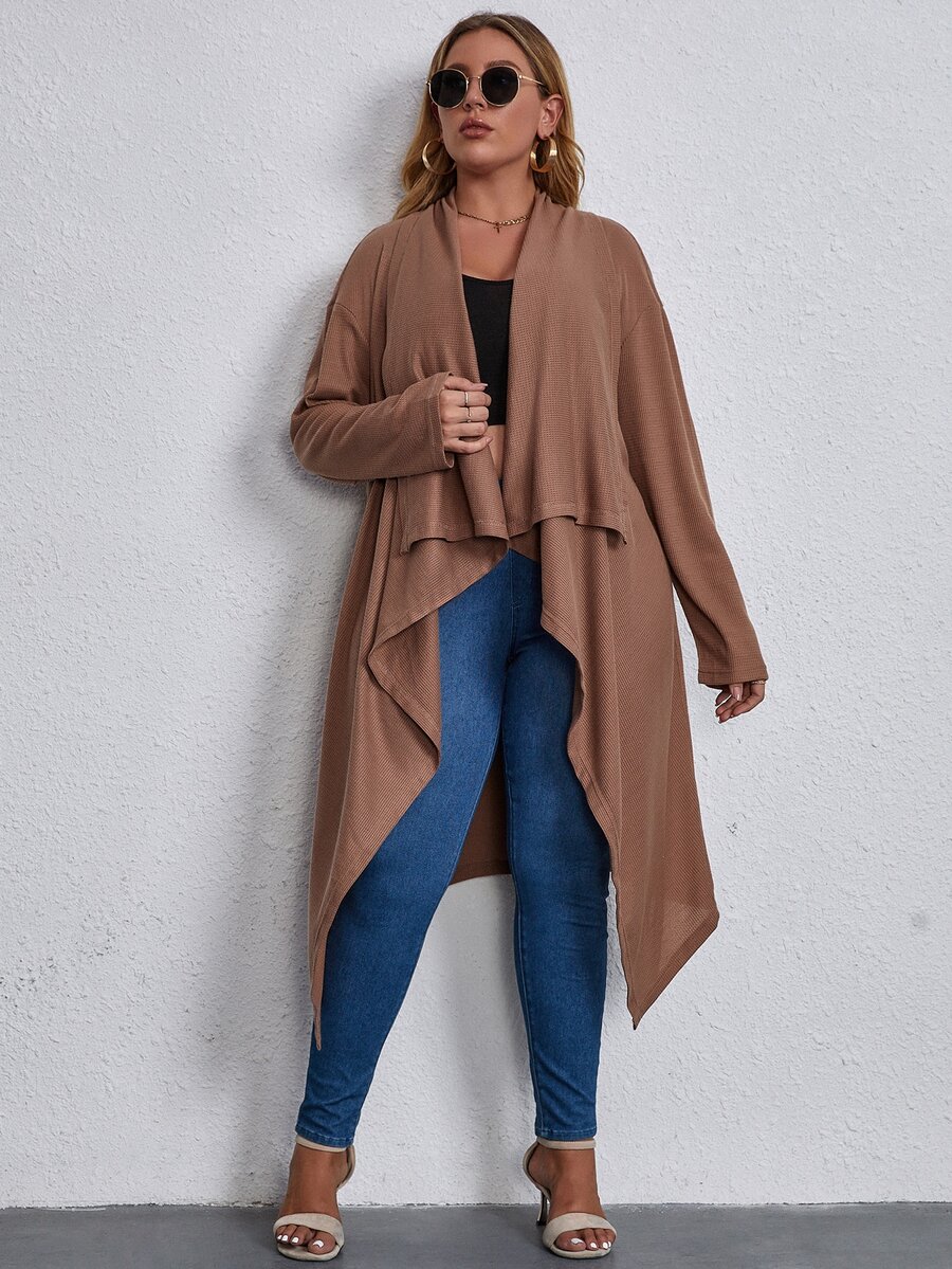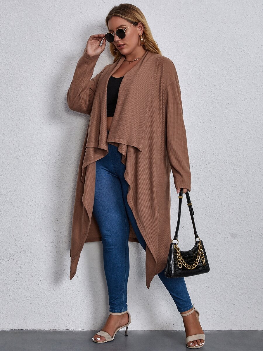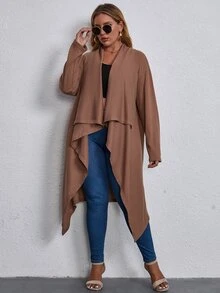 Mantel mit Wasserfall Kragen und offener Front