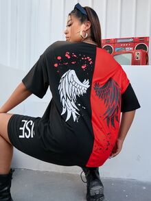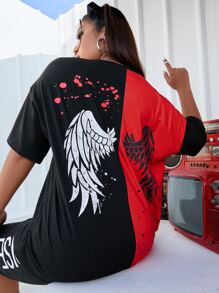 Drop Shoulder T-Shirt mit Flügel & Tinte Muster