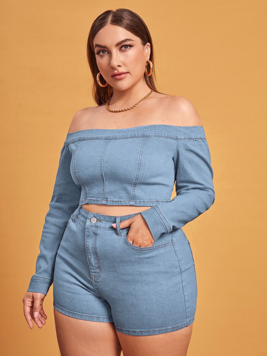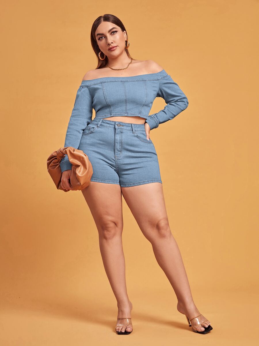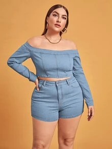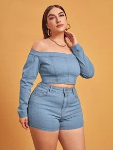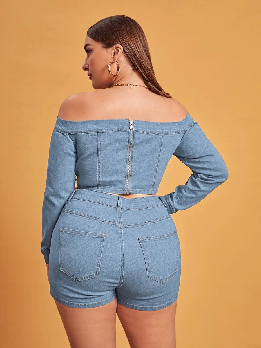 Jeans Top mit Reißverschluss hinten & Shorts Set