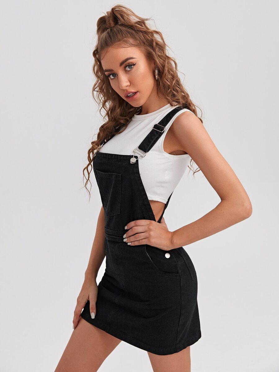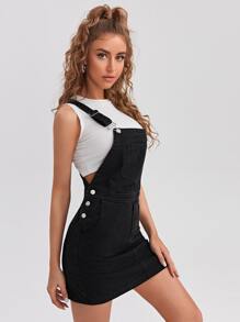 Knöpfe Einfarbig Preppy Jeans Kleider