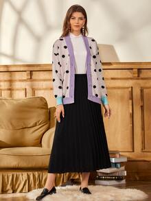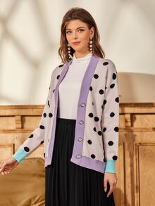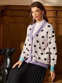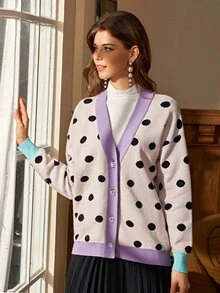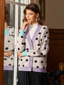 Strickjacke mit Punkten Muster, sehr tief angesetzter Schulterpartie und Knöpfen