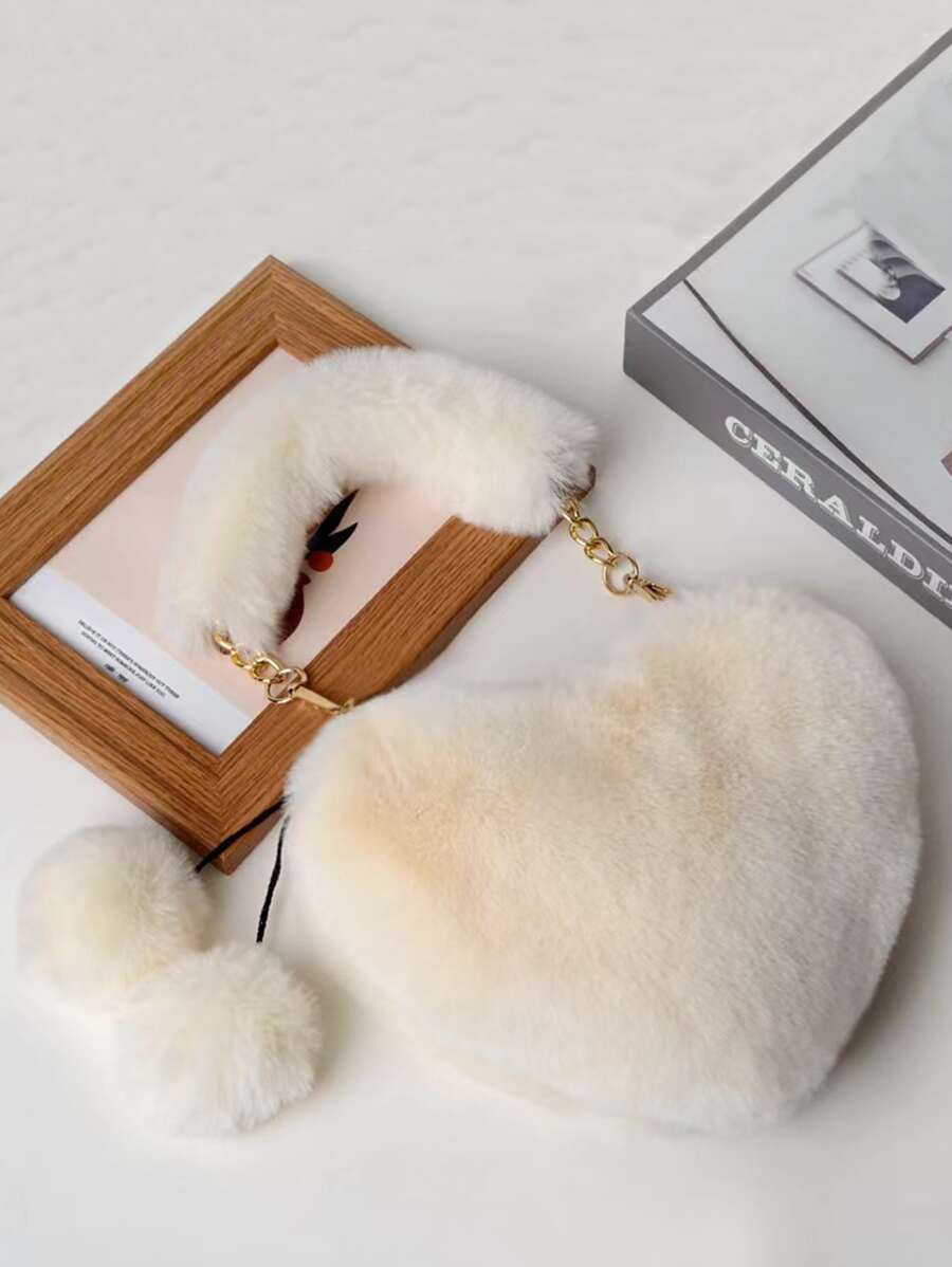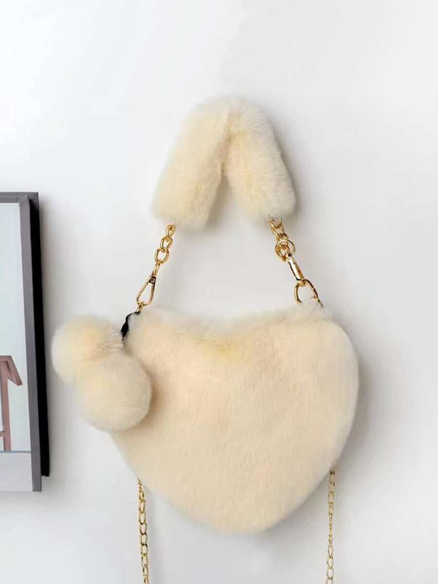Neuheitstasche mit Pompons Dekor, Herz Design, Flauschig